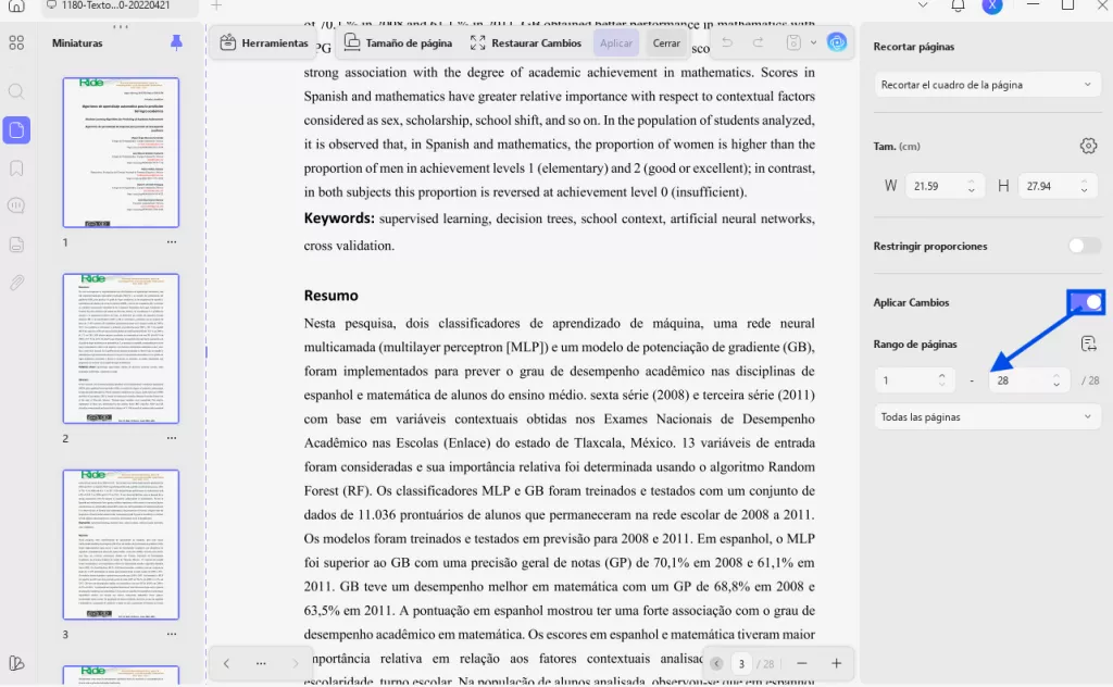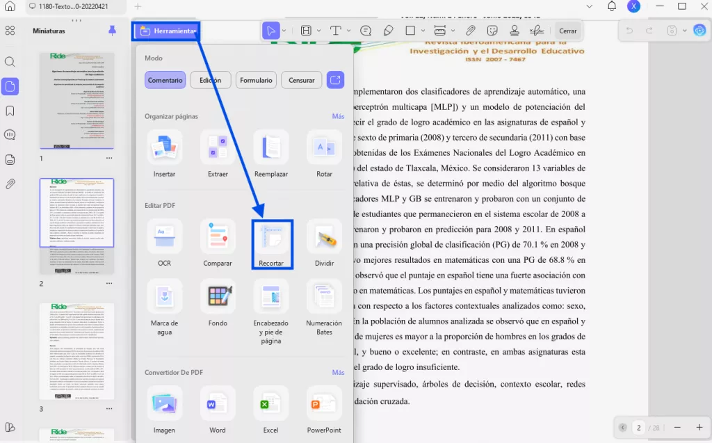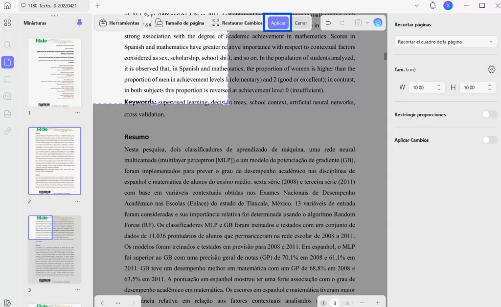 A continuación se explica cómo cambiar el tamaño de sus páginas PDF utilizando la función de recorte de UPDF:
