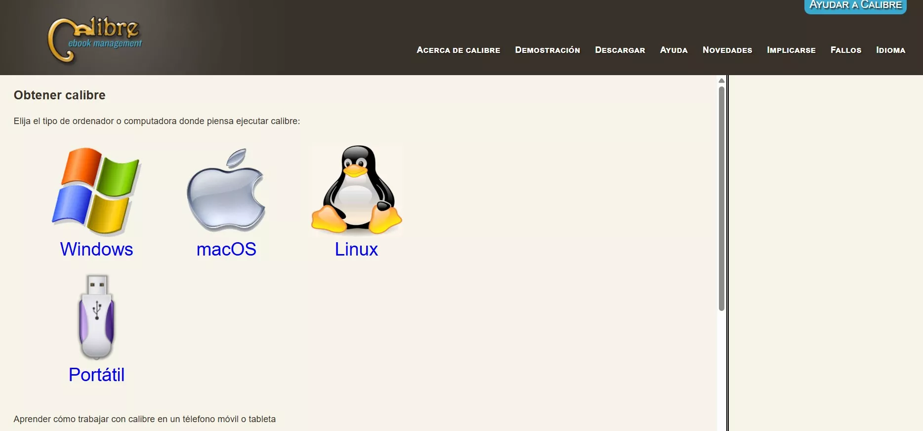 Paso 1: Descarga el software Calibre correspondiente a tu sistema operativo desde el sitio web oficial de la empresa. Es compatible con Android, iOS, Linux, macOS y Windows.