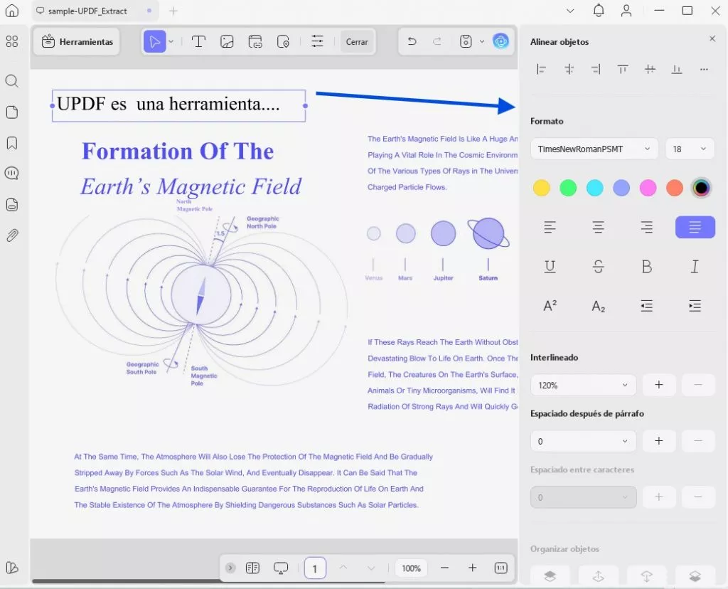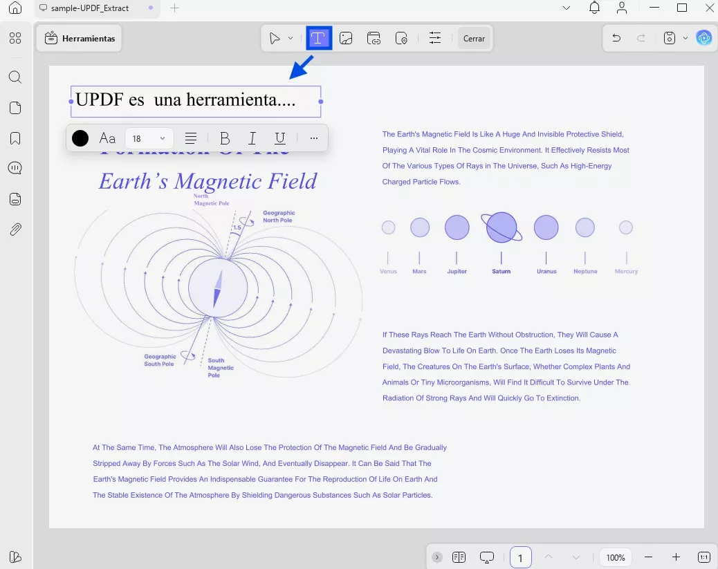 Después de hacer clic en el botón «Editar», puede comenzar a editar el texto existente en los documentos PDF. Solo tiene que hacer clic en el texto del PDF y podrá editarlo, cambiarlo y eliminarlo.