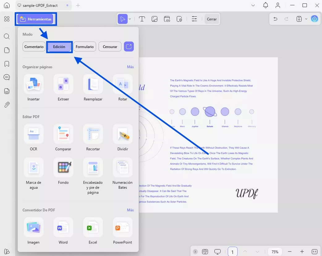 - OCR: UPDF puede extraer el texto de su archivo escaneado para que pueda trabajar con él.