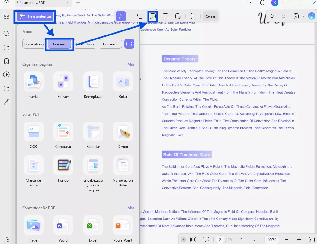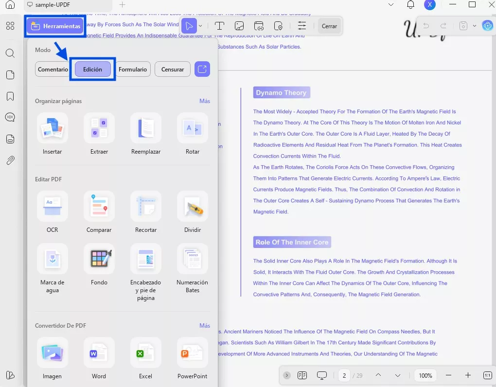 Si Adobe no puede reconocer el texto debido a un fallo en el software, puede utilizar UPDF para editar el archivo PDF. Solo tiene que seguir estos sencillos pasos para editar un documento PDF con UPDF.
