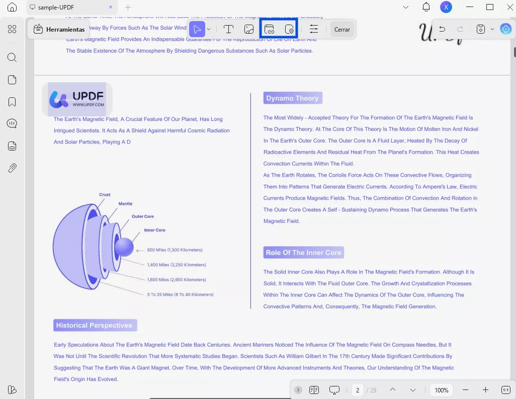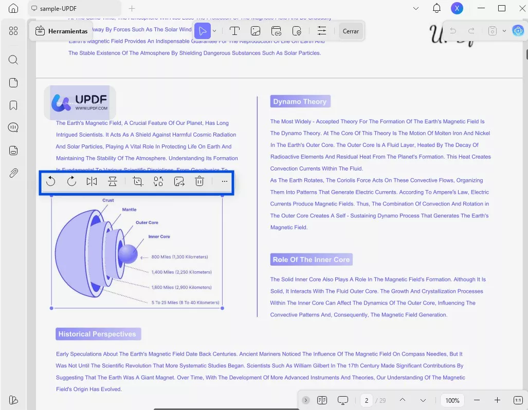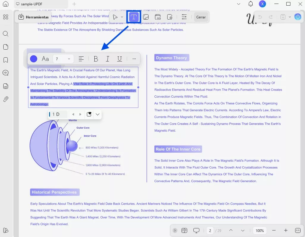 Paso 3. Una vez que se ha realizado el OCR para convertir el archivo escaneado en un archivo editable, se puede reconocer el texto del PDF. Puede utilizar las herramientas de edición de UPDF para editar, añadir o eliminar cualquier texto o imagen y añadir cualquier enlace web o de página.
