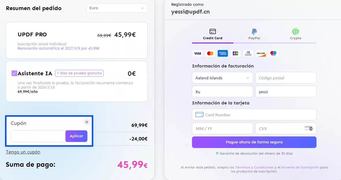 UPDF Pro de por vida65.99€45.99€ (confirmar)