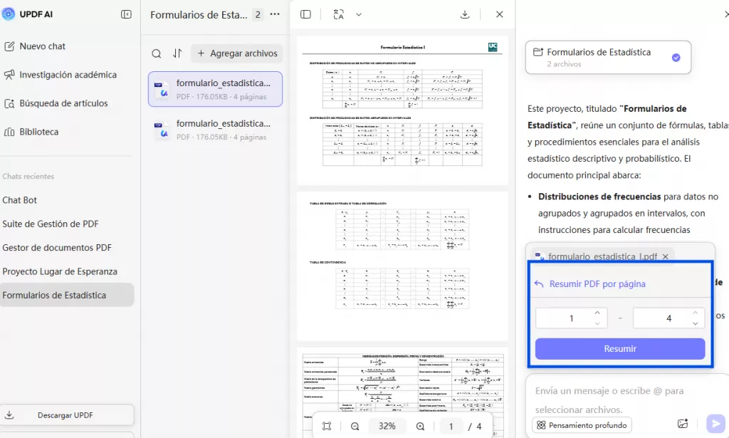 ¿Quieres resumir una página específica de tu PDF que tiene demasiada información y tablas? No te preocupes porque, con UPDF AI, también puedes resumir páginas específicas de tu archivo. El hecho de que UPDF AI pueda analizar documentos en función del rango de páginas, lo convierte en el ganador entre todas las herramientas de IA para PDF .