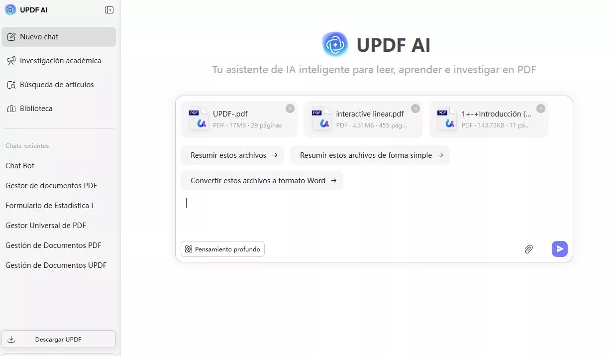 Paso 1. Abra el cuadro de chat de UPDF AI