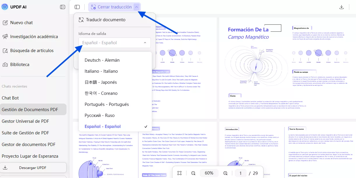 - Amplio soporte de idiomas: UPDF puede traducir PDF en casi cualquier idioma.
