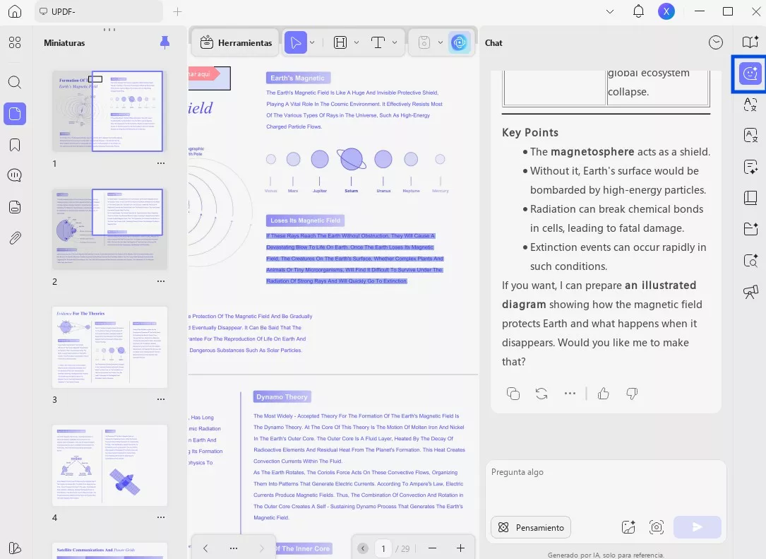 Además de traducir, puedes anotar o editar tus archivos PDF para mejorar aún más el documento. Con la ayuda de la tecnología de IA integrada, también puedes resumir y chatear con el archivo PDF a través del modo de IA de UPDF.