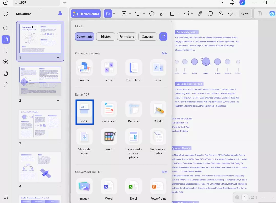 Los PDF escaneados deben convertirse a un formato editable antes de traducirlos. La herramienta de Reconocimiento Óptico de Caracteres de UPDF permite editar el contenido escaneado, lo que facilita la traducción. Siga los pasos a continuación para comprender mejor cómo traducir los documentos escaneados.