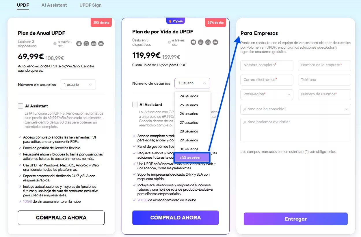 Paso 1. Adquiere el Plan para Empresas de UPDF haciendo clic en este enlace o contacta a ventas en [email protected] si necesitas solicitar más de 10 licencias.