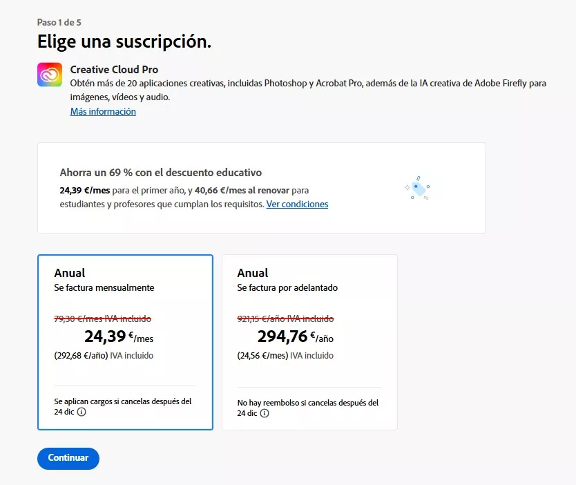 Paso 4. Inicie sesión en el sitio web de Adobe con su dirección de correo electrónico. Seleccione la forma de pago y introduzca sus datos de facturación. A continuación, haga clic en "Aceptar y suscribirse" para completar la compra.