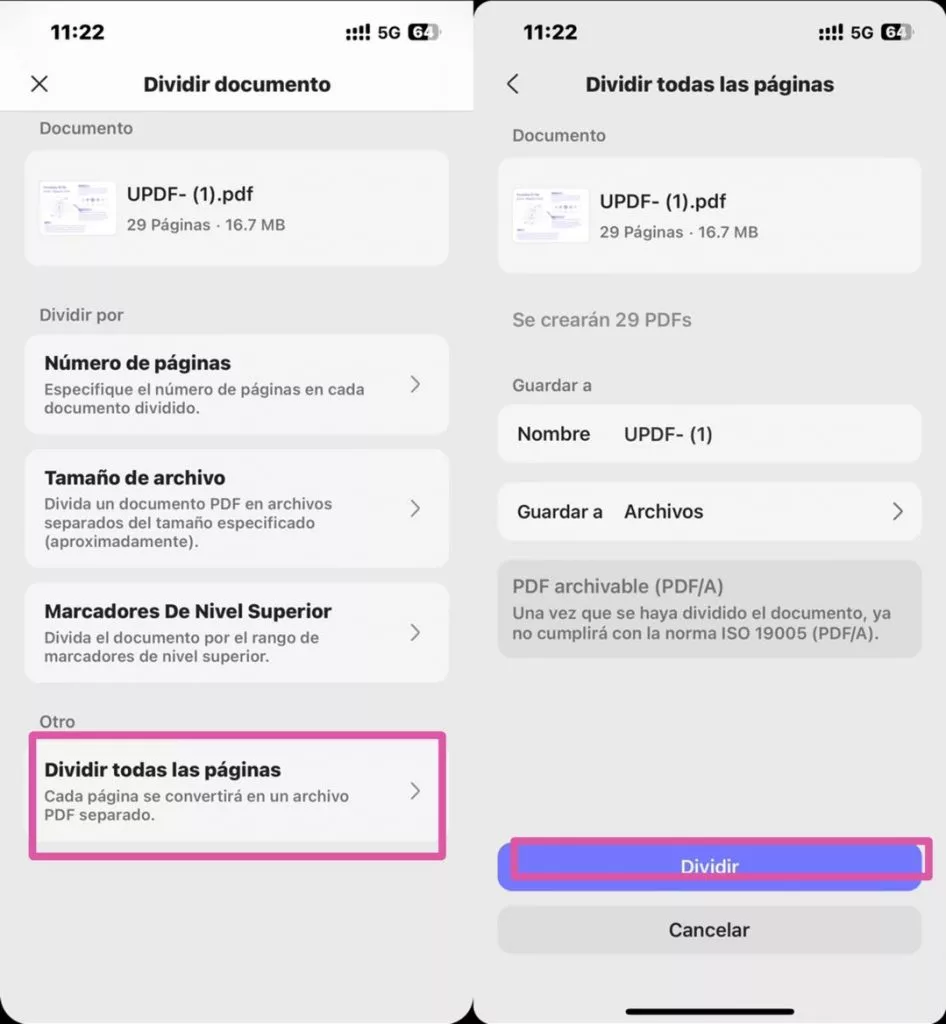 Cuando se desea dividir un PDF por número de páginas en un iPhone, se puede dividir un documento en secciones más pequeñas basadas en un número determinado de páginas. Para empezar en el iPhone, lea la siguiente guía y simplifique la gestión de archivos en el móvil: