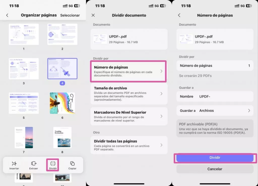 Parte 2. ¿Cómo dividir un PDF en un teléfono móvil con UPDF?