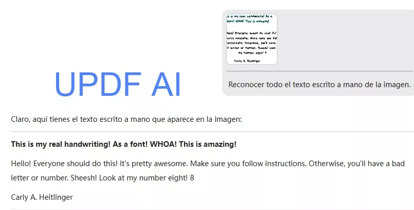 Como puede ver, los resultados del reconocimiento de escritura manuscrita mediante UPDF AI son significativamente más precisos.