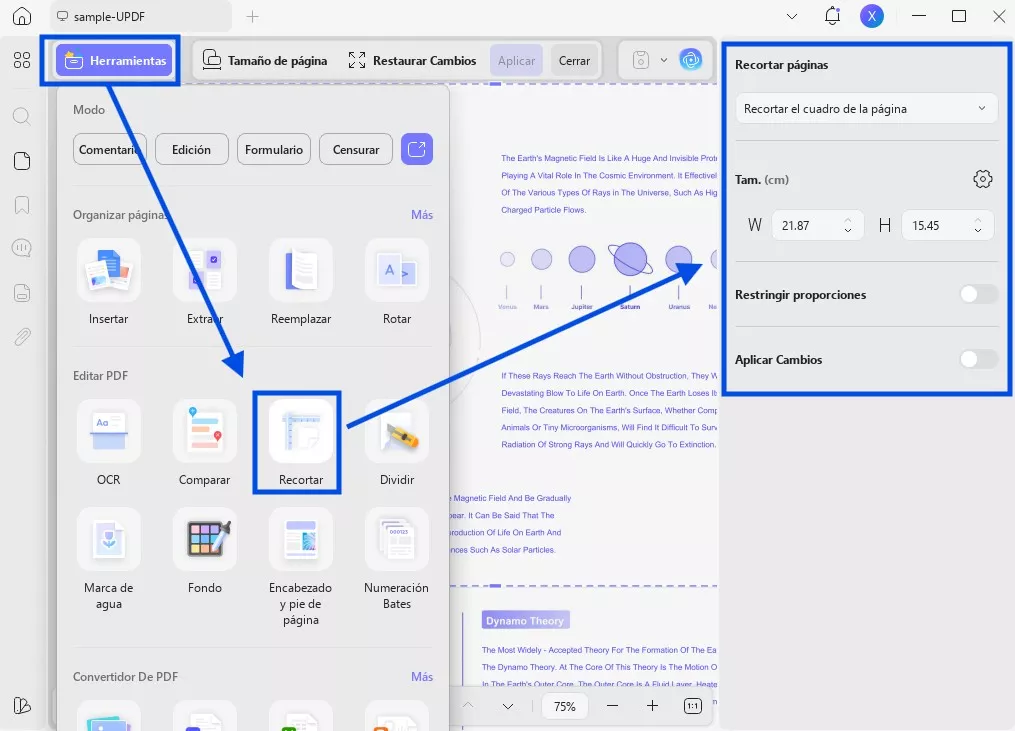 También puedes restringir las proporciones para asegurarte de que tu contenido siga siendo compatible para impresión incluso después de recortarlo. Así que, si deseas imprimir tus documentos PDF sin márgenes, puedes descargar UPDF en tu computadora y probar sus características de impresión y recorte con los siguientes pasos: