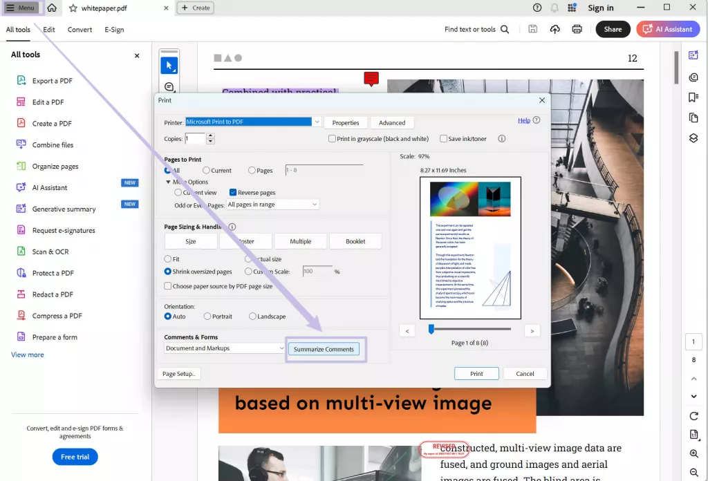 Paso 3: Acrobat creará un nuevo PDF con las páginas y los comentarios resumidos.