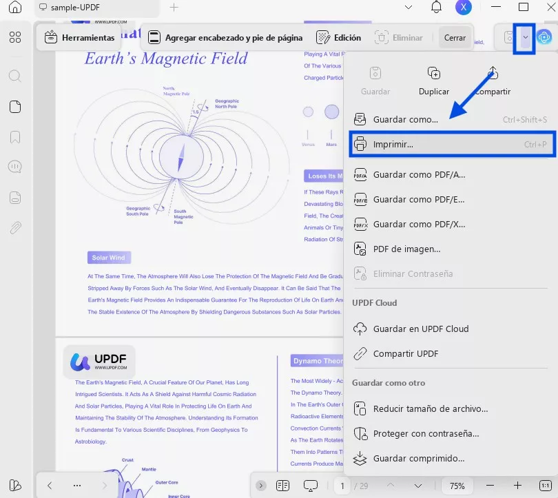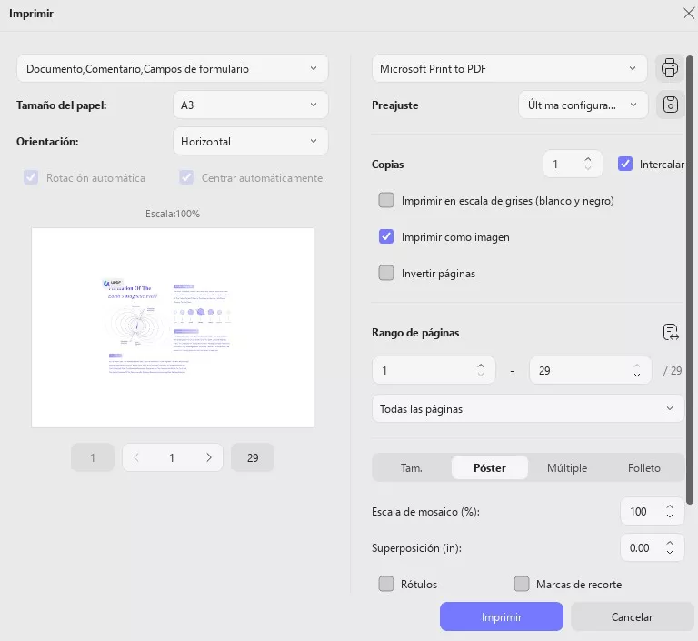 Una vez añadidos los números de página, el siguiente paso es imprimir el PDF con los números de página. Para ello, siga los siguientes pasos: