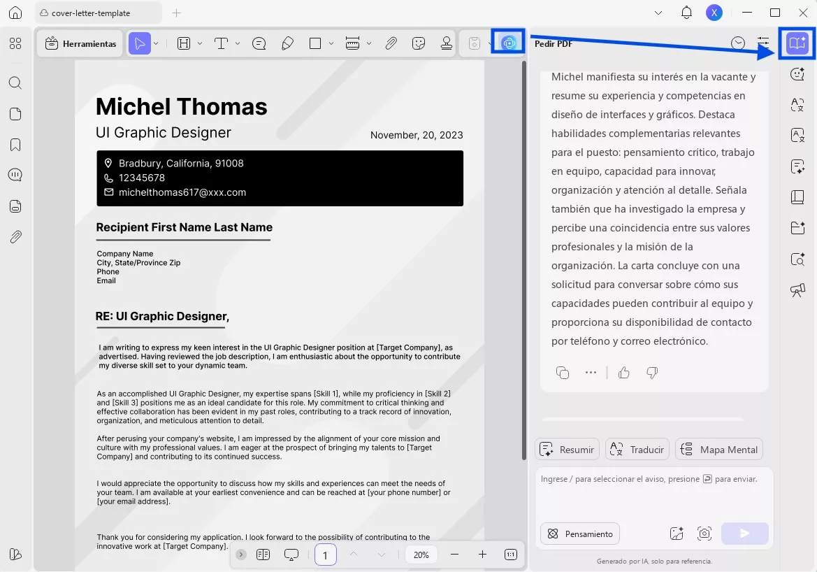 Mientras editas tu plantilla de carta de presentación, ten en cuenta todos los consejos mencionados anteriormente para causar una buena impresión. Puedes realizar esta tarea fácilmente con la ayuda de la herramienta definitiva: UPDF. Simplifica el proceso de edición y te ayuda a crear una carta de presentación que destaque sin esfuerzo. Gracias a su integración con la inteligencia artificial, UPDF hace que redactar una carta de presentación atractiva sea más sencillo, ofreciéndote la flexibilidad y la inspiración que necesitas para crearla.