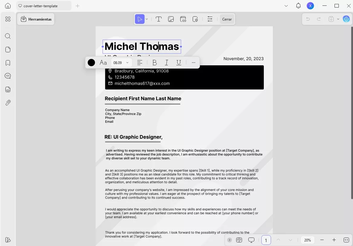 - Puedes editar el texto de tu plantilla de carta de presentación utilizando UPDF.