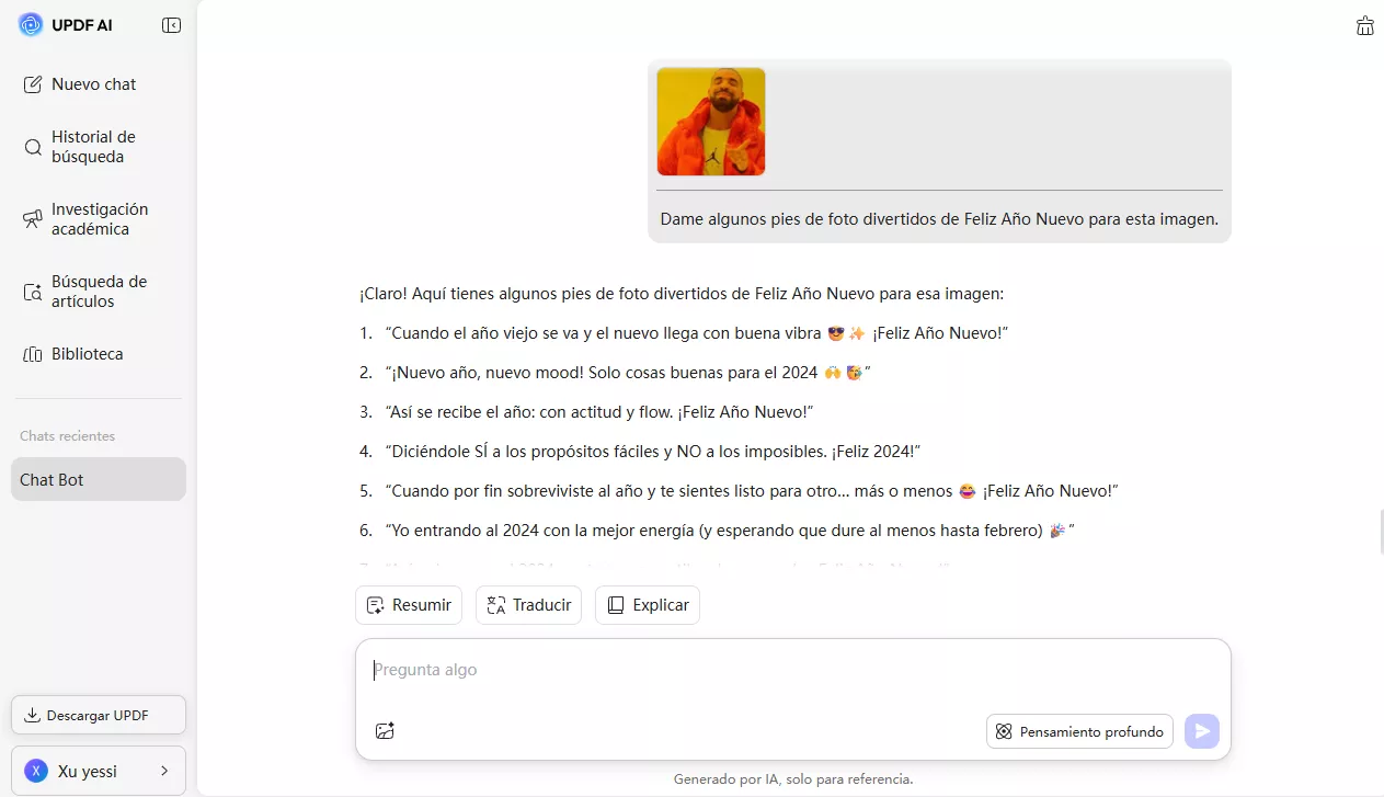 Te enseñamos cómo usar UPDF AI para crear memes divertidos de Año Nuevo.