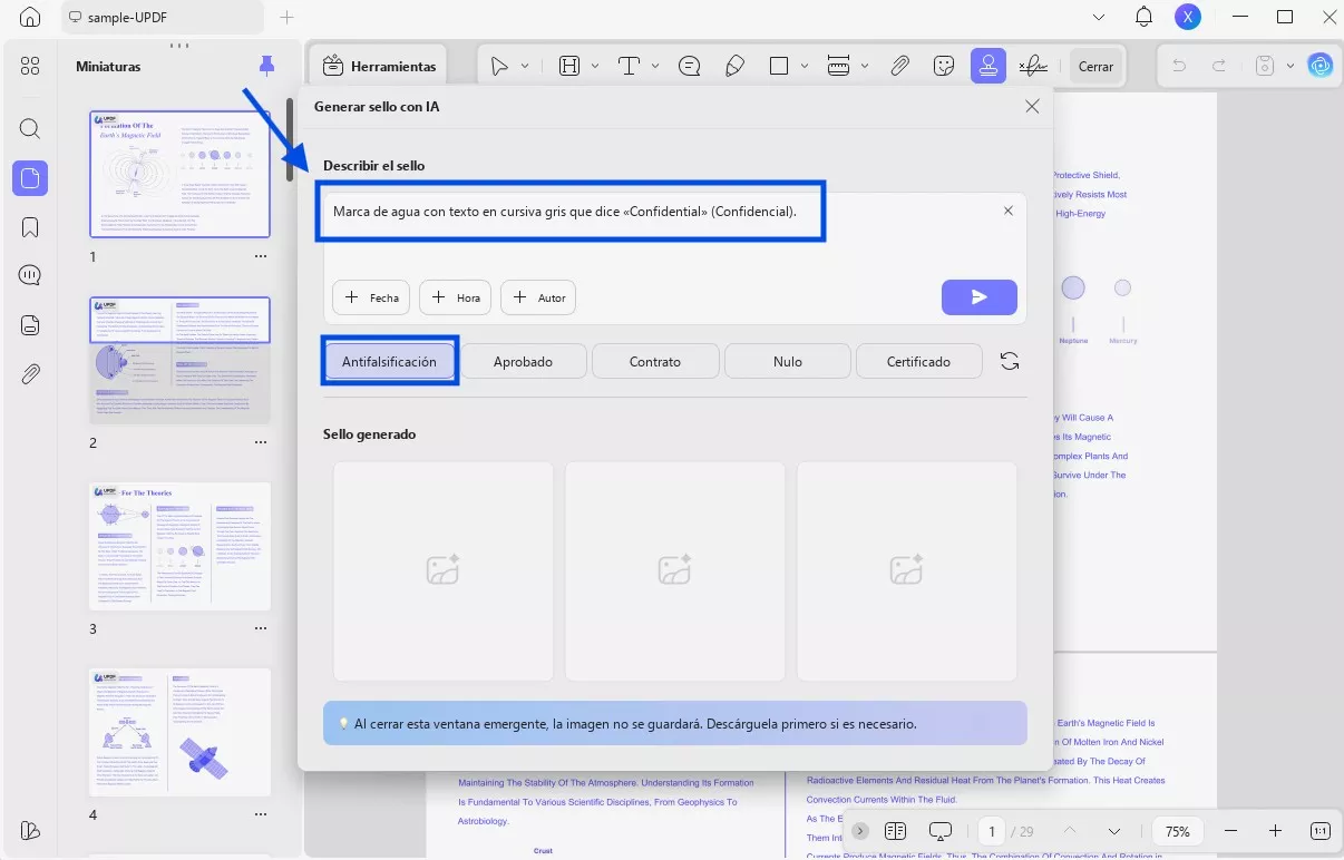 Parte 1. Cómo generar sellos para PDF mediante IA