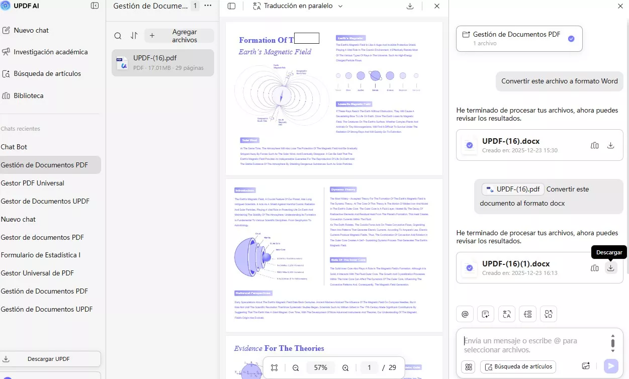 Paso 3. Ahora, UPDF AI online convertirá tu archivo PDF a Word y te proporcionará un archivo descargable. Solo tienes que pulsar el icono «Descargar» para finalizar esta tarea.
