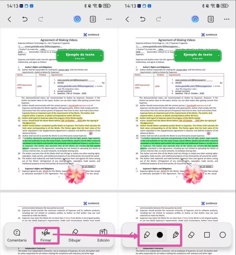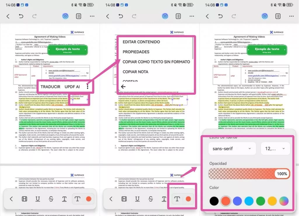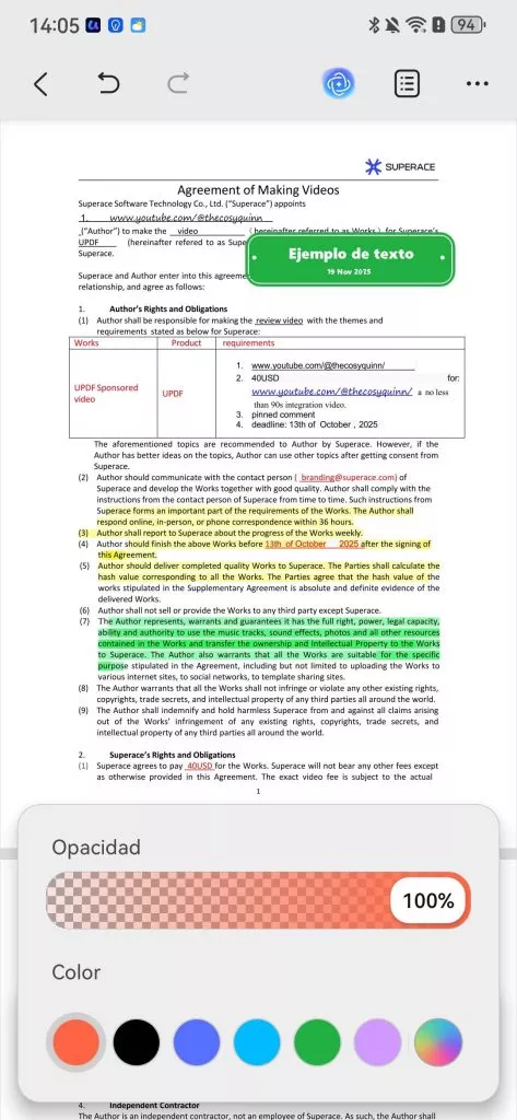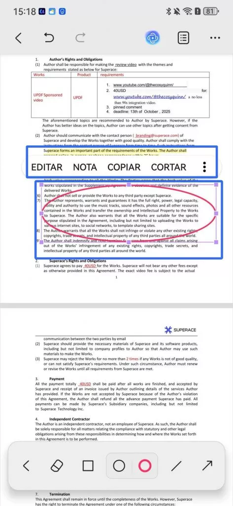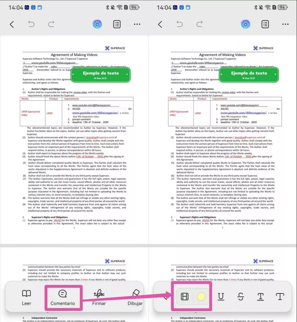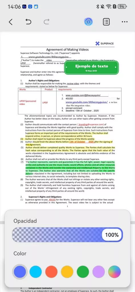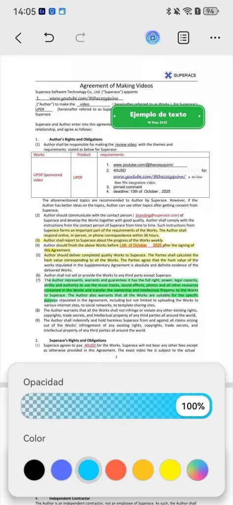 UPDF para Android le permite annotar sus PDFs de diferentes maneras como resaltar, tachar, subrayar, línea ondulada, lápiz, formas, pegatinas, sellos, notas adhesivas y más. Echemos un vistazo a cómo puede annotar usando cada una de estas funciones: