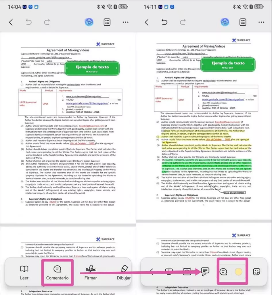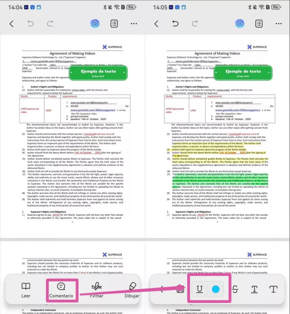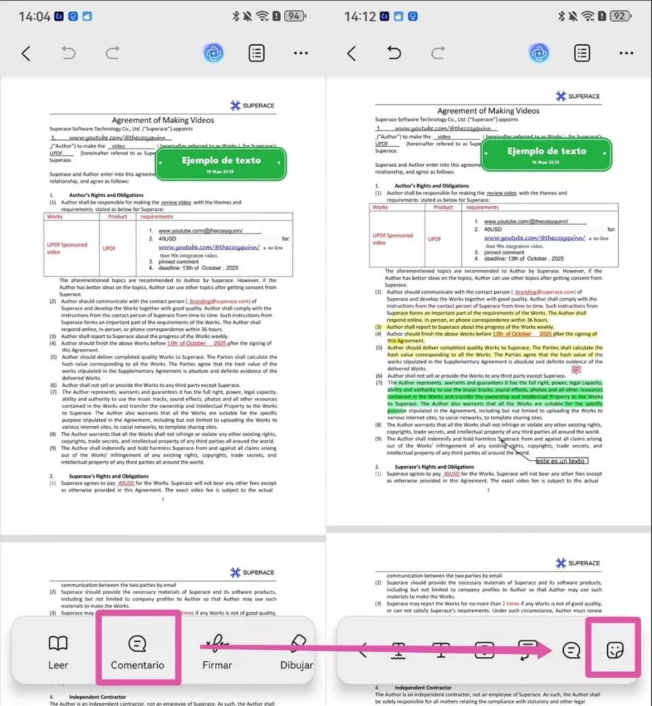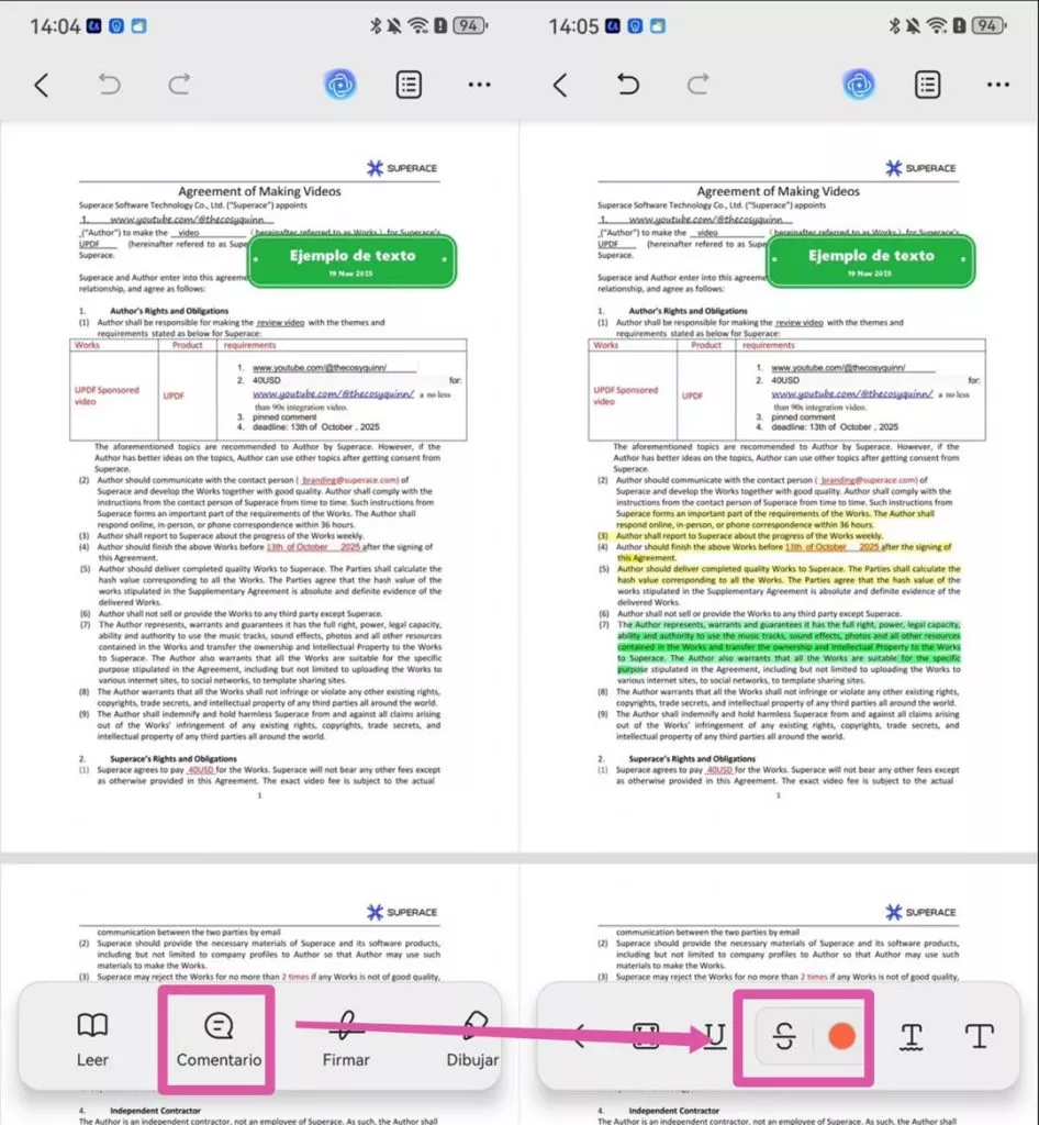 UPDF para Android le permite annotar sus PDFs de diferentes maneras como resaltar, tachar, subrayar, línea ondulada, lápiz, formas, pegatinas, sellos, notas adhesivas y más. Echemos un vistazo a cómo puede annotar usando cada una de estas funciones: