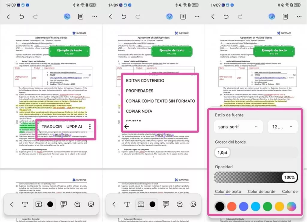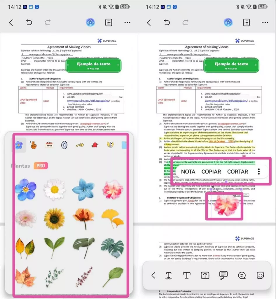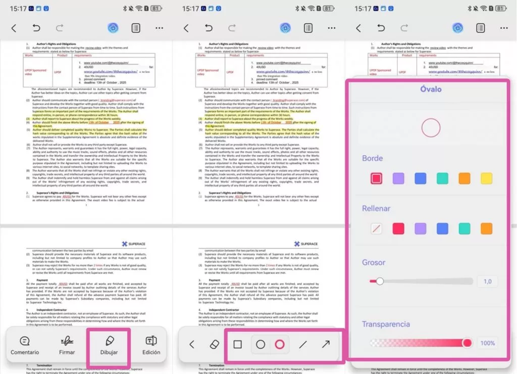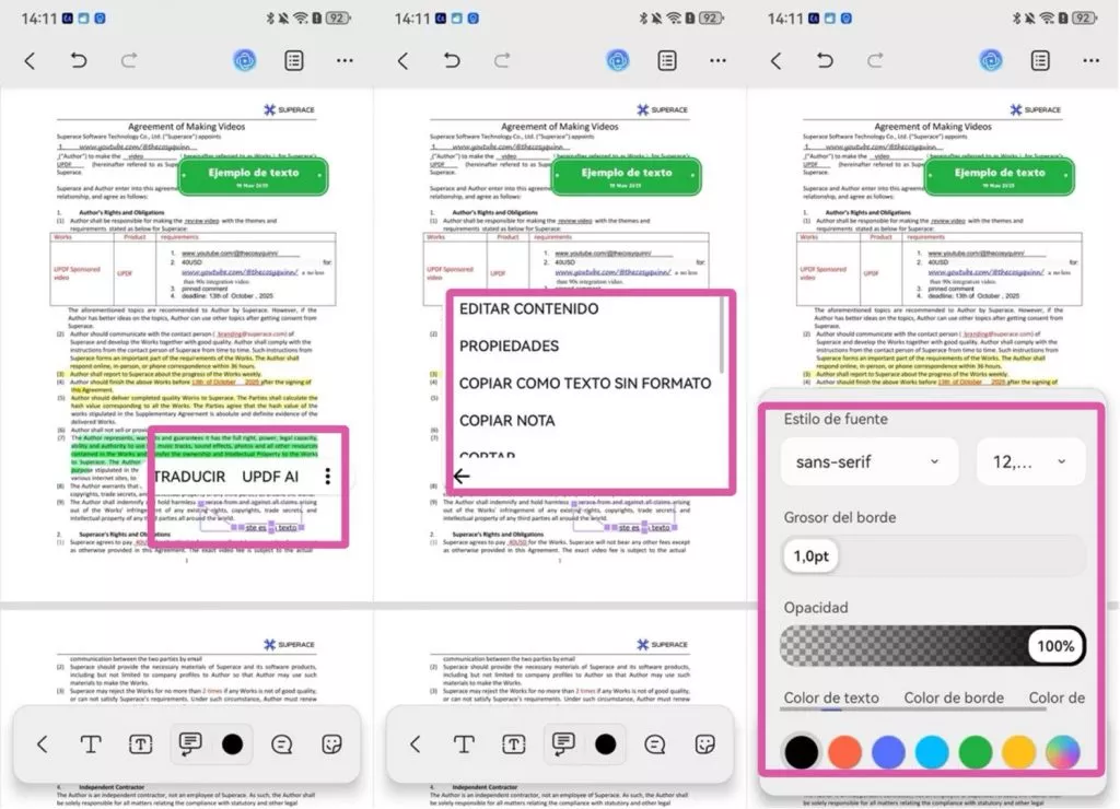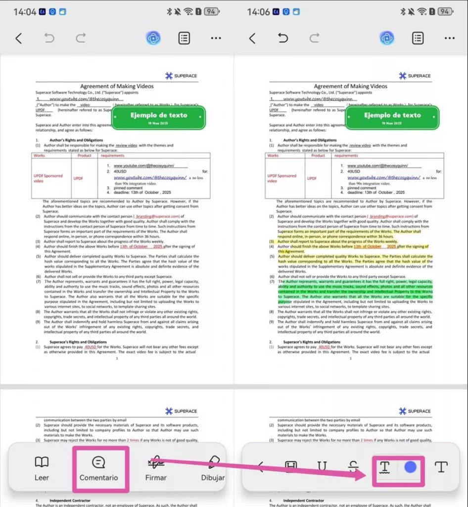 UPDF para Android le permite annotar sus PDFs de diferentes maneras como resaltar, tachar, subrayar, línea ondulada, lápiz, formas, pegatinas, sellos, notas adhesivas y más. Echemos un vistazo a cómo puede annotar usando cada una de estas funciones: