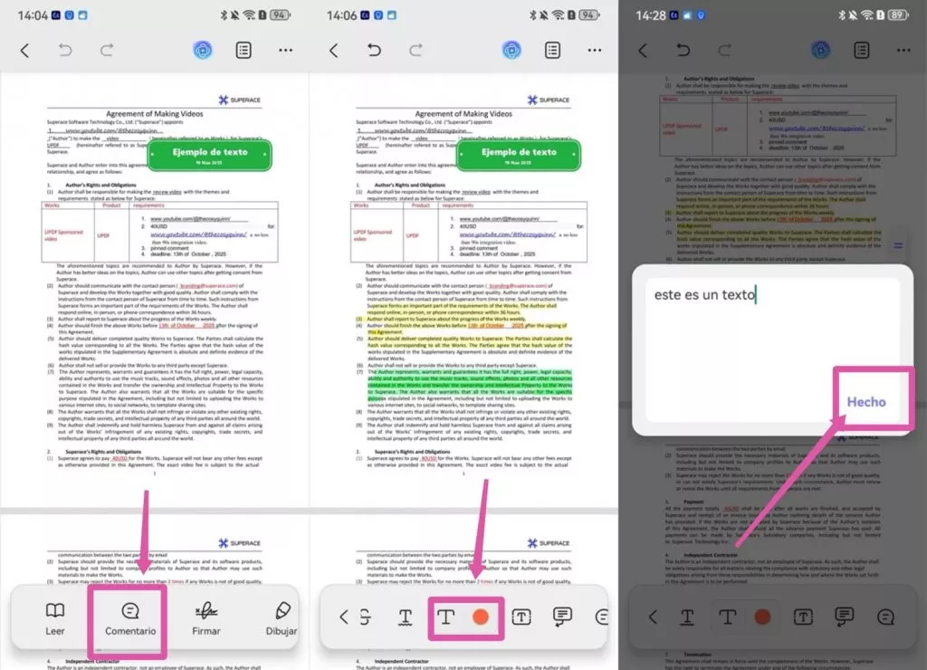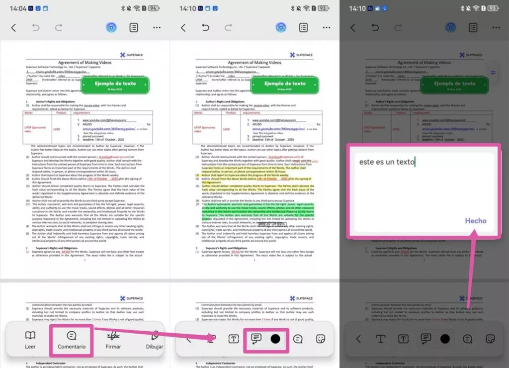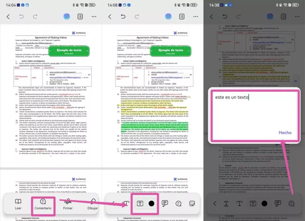 - Para agregar un comentario de texto, toque el botón "Comentar".
