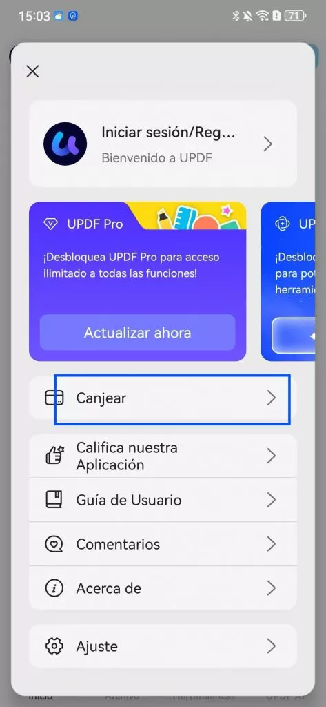 Si tienes un código de licencia, sigue las instrucciones para canjear UPDF en Android: