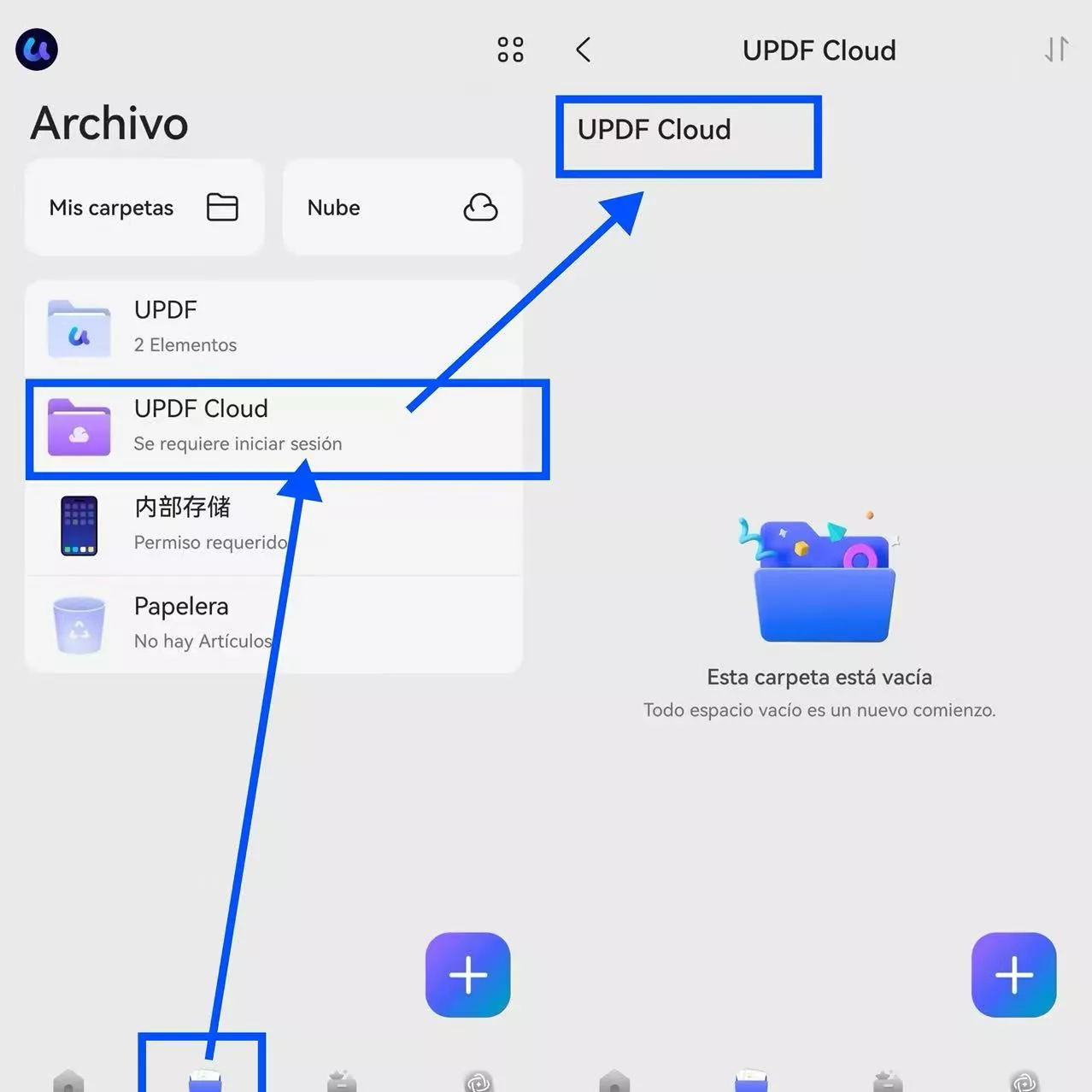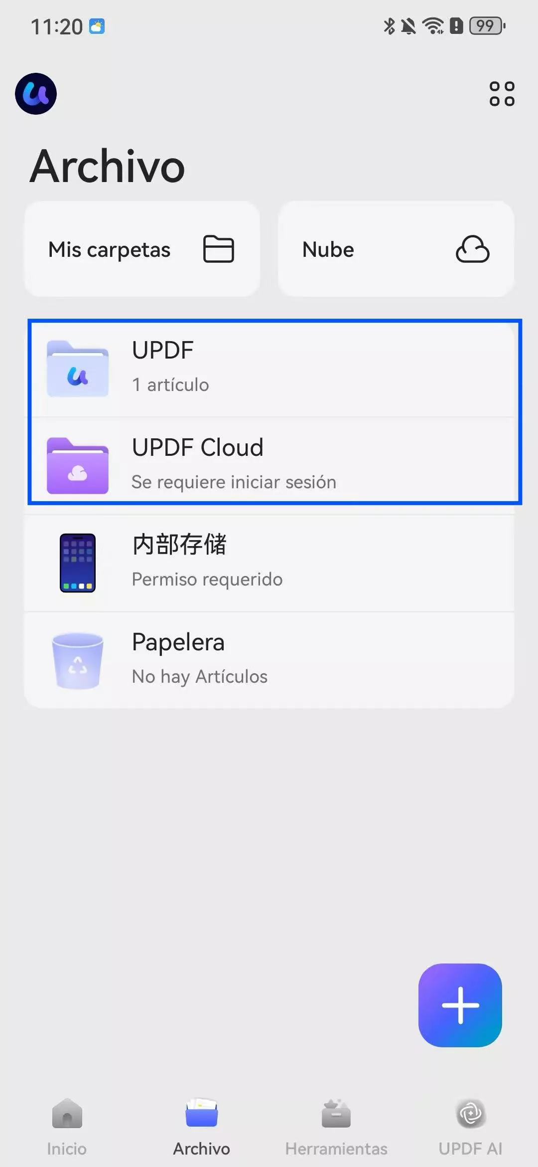 - Una vez que subas el PDF a UPDF Cloud, puedes ir a la interfaz principal y tocar en "UPDF Cloud" en la sección de "Archivos" para encontrar tus archivos PDF y gestionarlos.