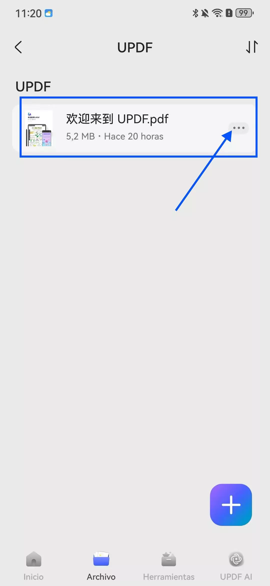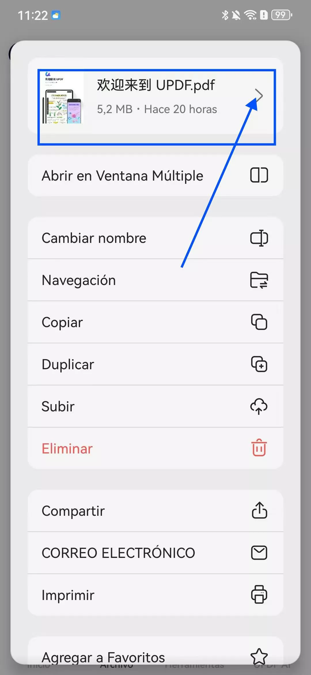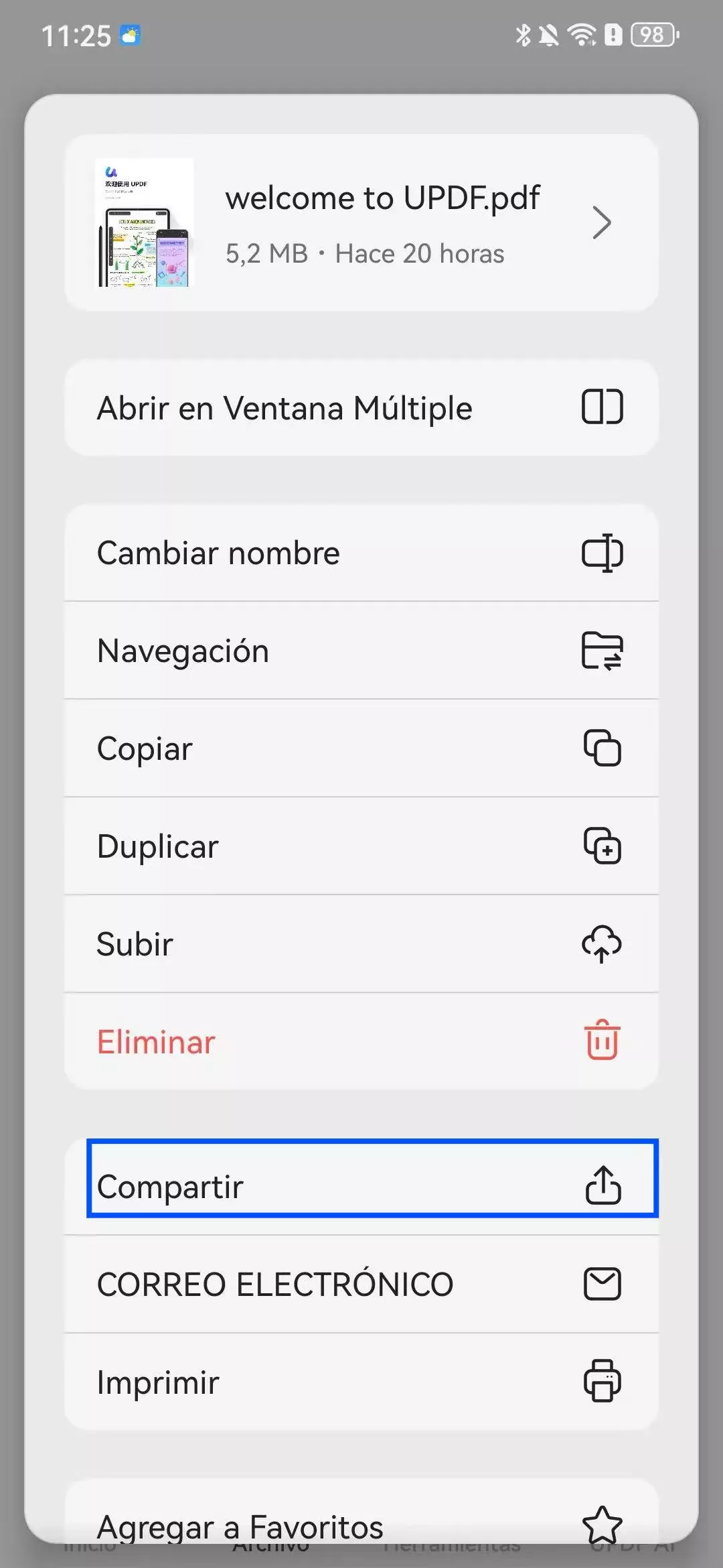 - puedes mantener presionado el PDF o tocar en los "Tres Puntos" al final del archivo PDF.