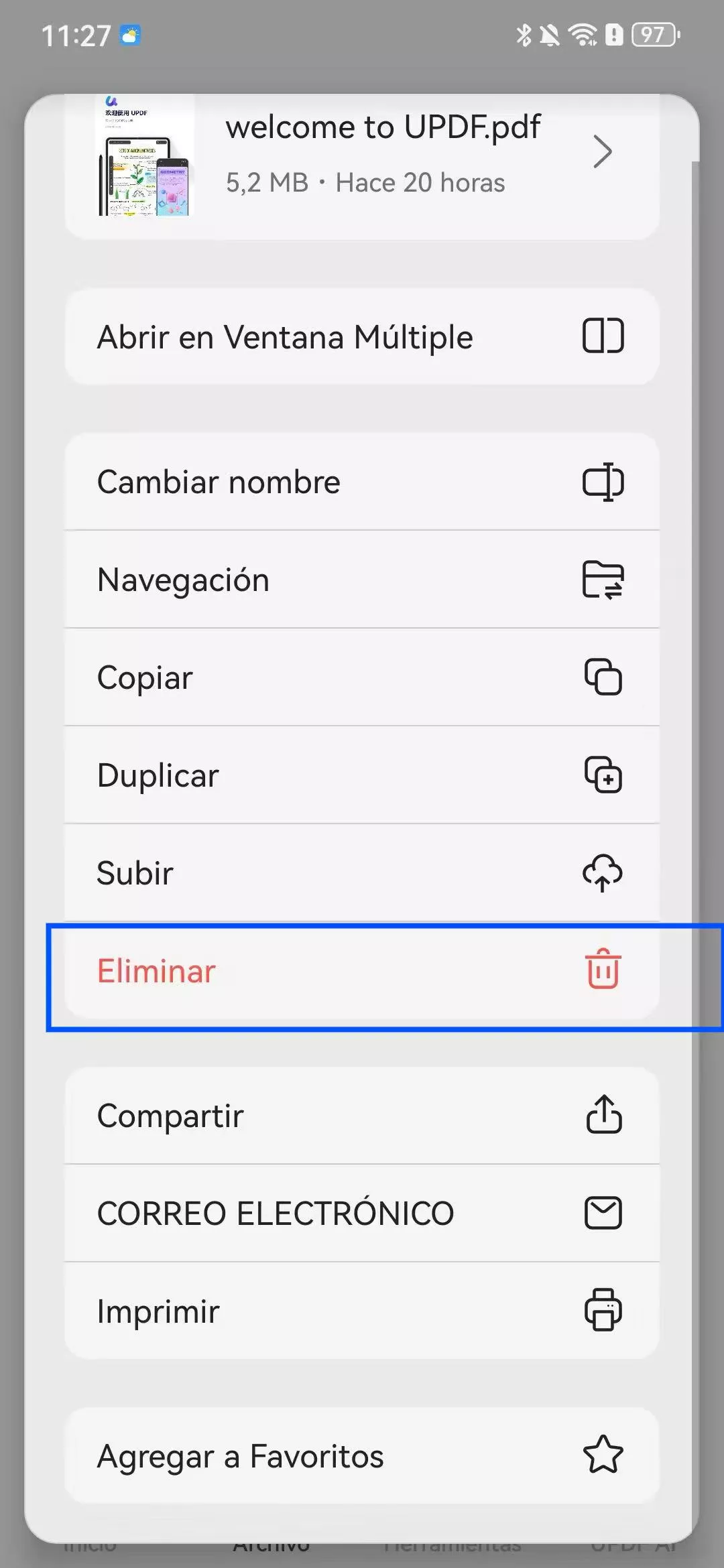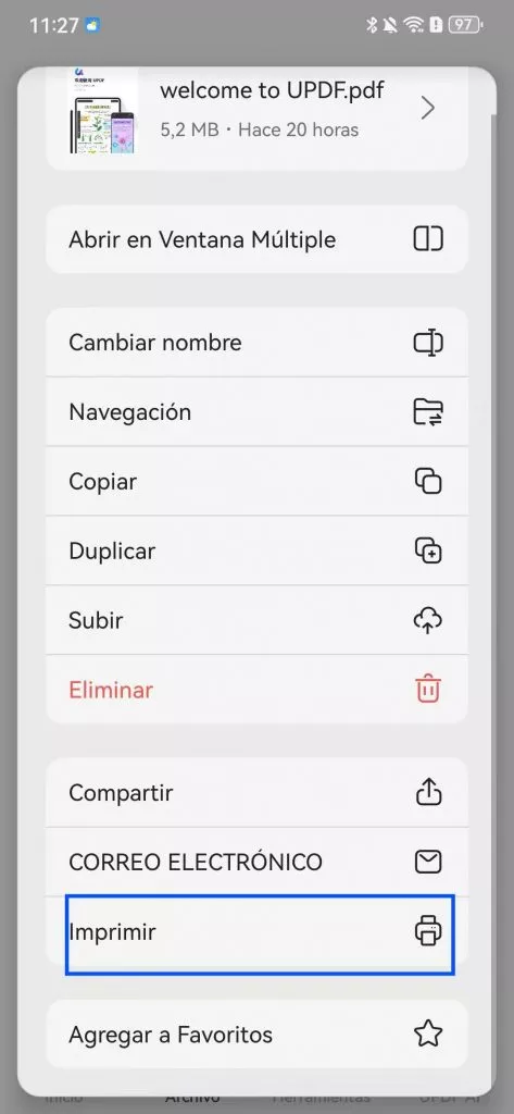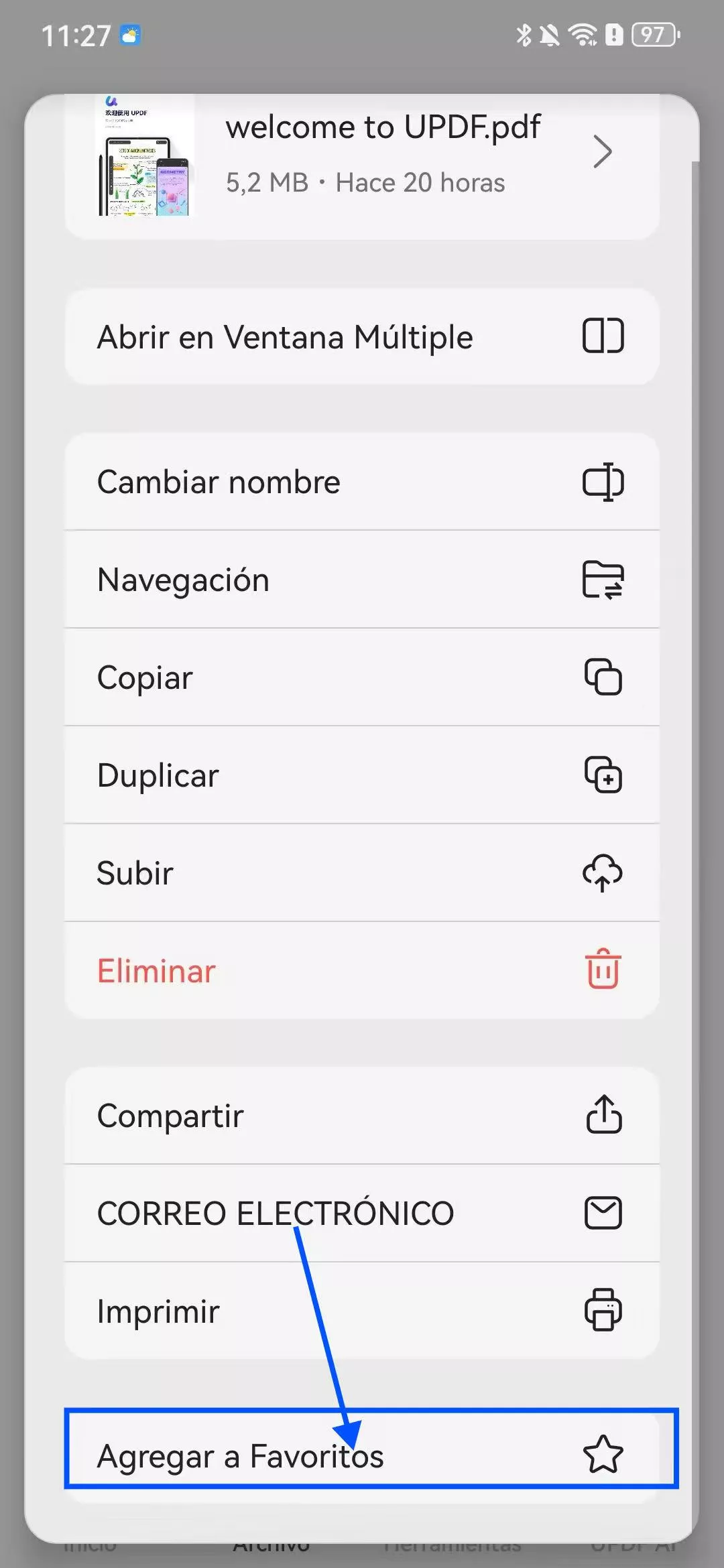 Tienes la posibilidad de renombrar, copiar, duplicar, eliminar, marcar como favorito, mover, enviar por correo electrónico, compartir, copiar a UPDF Cloud, imprimir y crear una carpeta para ellos. Aquí, te mostraremos cómo gestionar documentos PDF con UPDF en Android, paso a paso. Puedes hacer clic en el botón de abajo o ir a la Play Store para descargarlo.