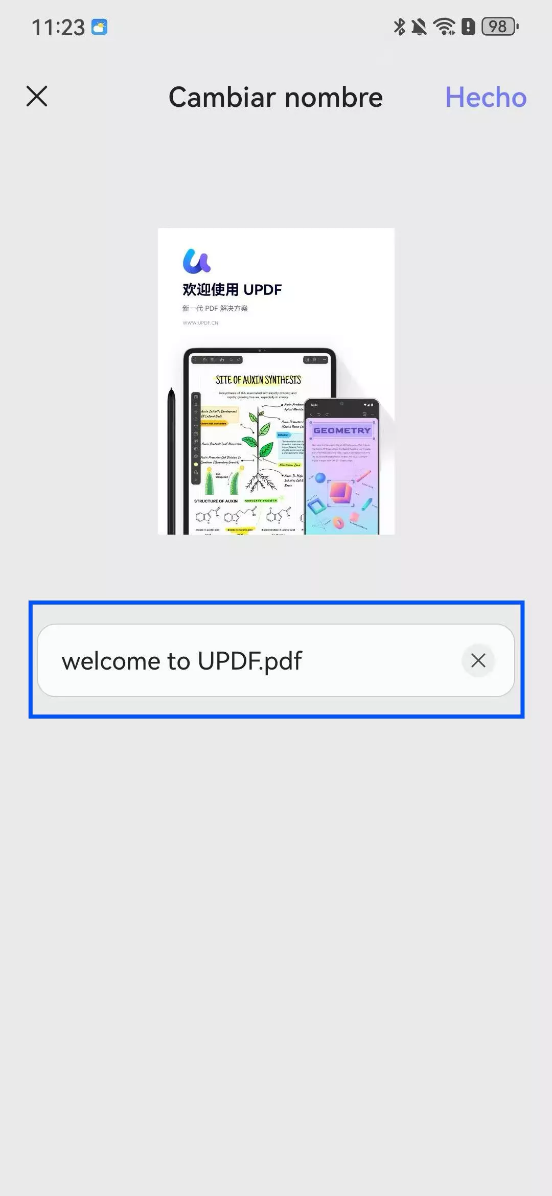- Ahora, puedes escribir el nombre que necesitas y tocar en "Confirmar" para guardar los cambios. Has cambiado el nombre del PDF con éxito.