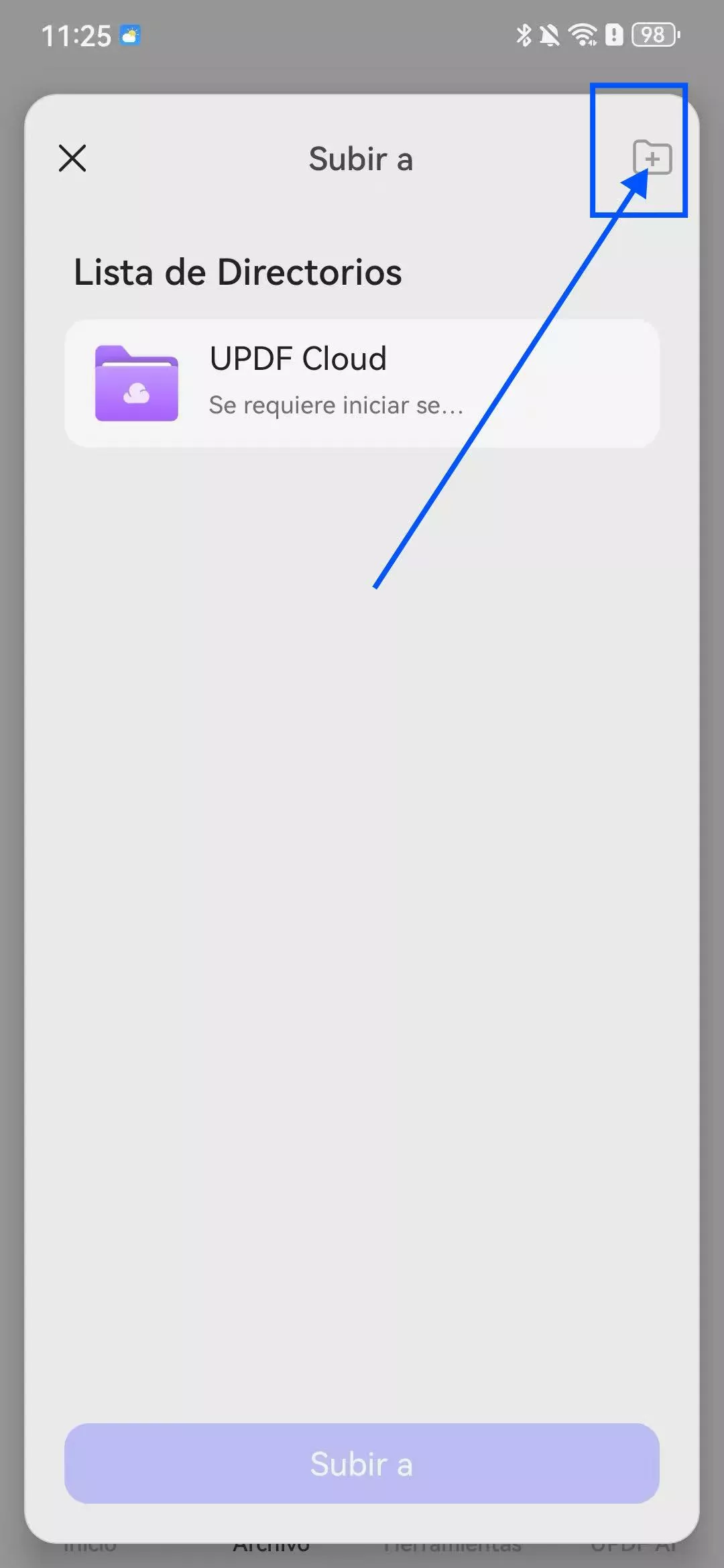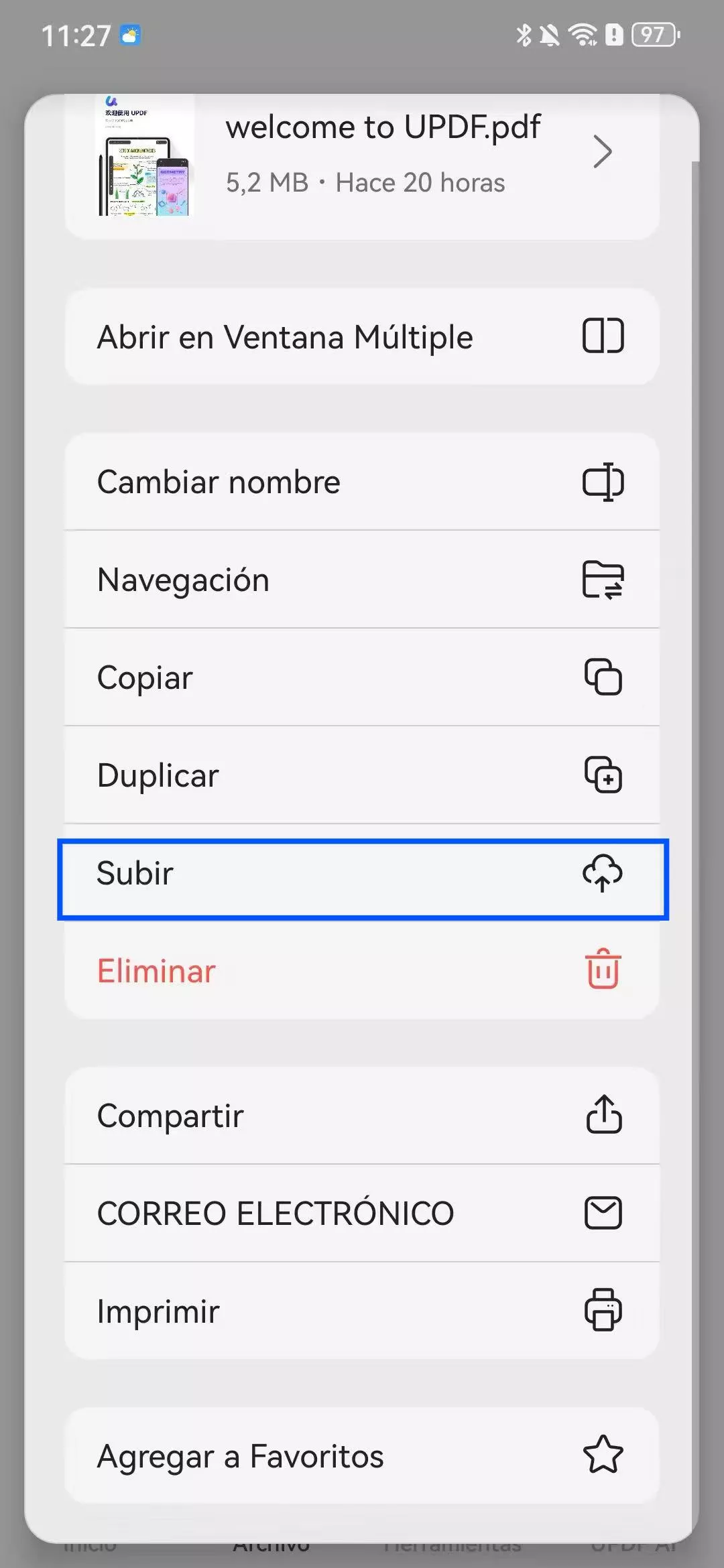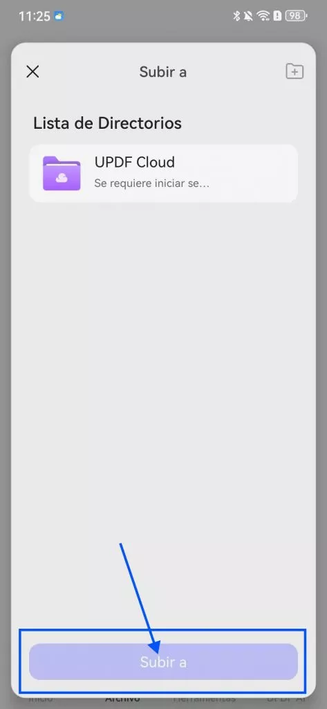 Si deseas subir el PDF a UPDF Cloud y acceder a él en otros dispositivos, puedes usar la función "Subir". Solo sigue los siguientes pasos para aprender cómo usarla.