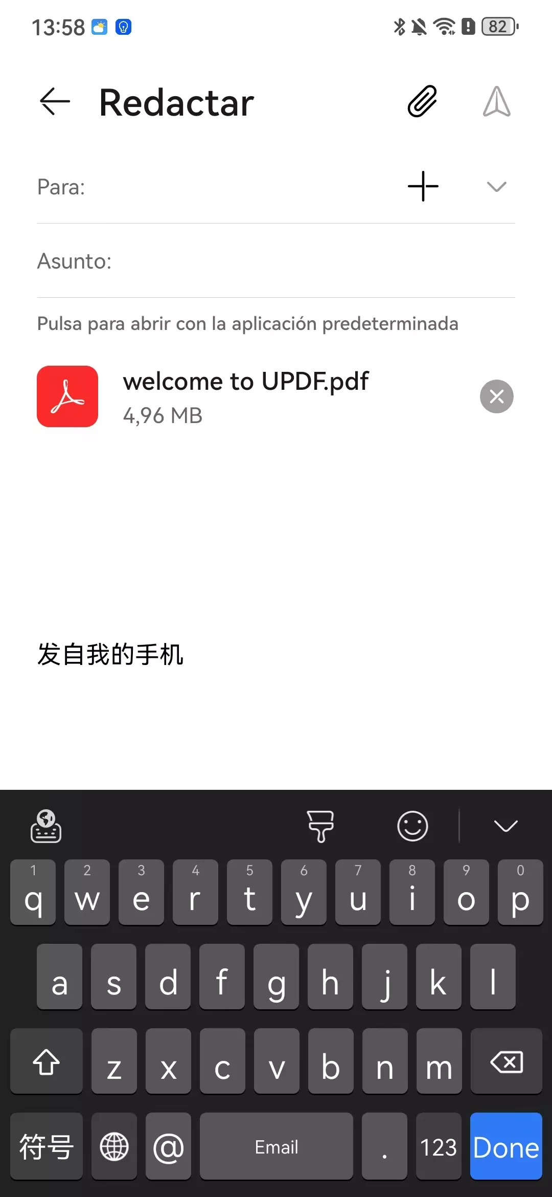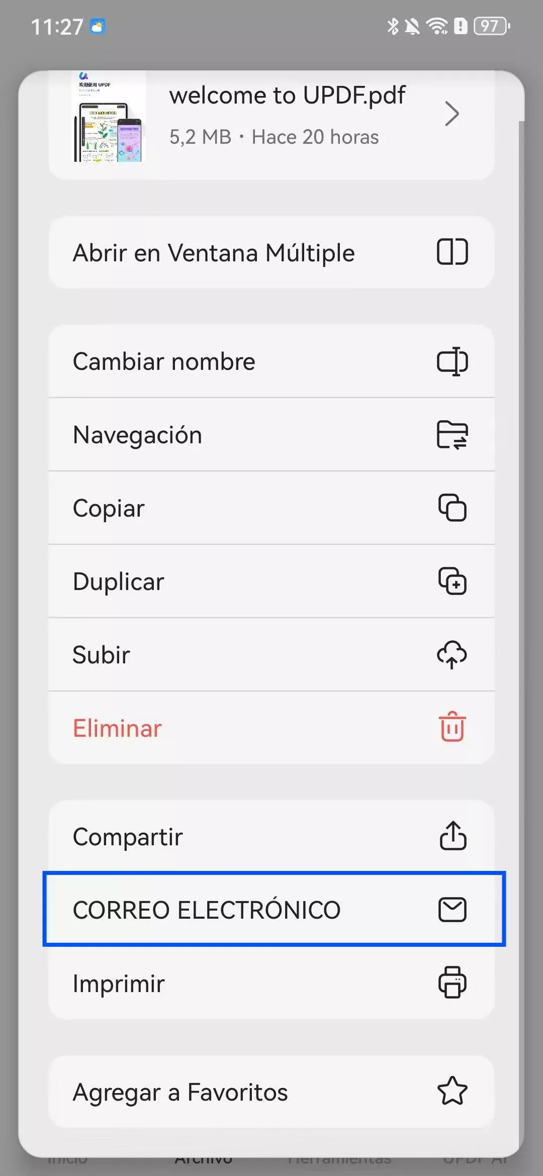 - Puedes tocar el ícono de "Correo electrónico" en UPDF en Android.