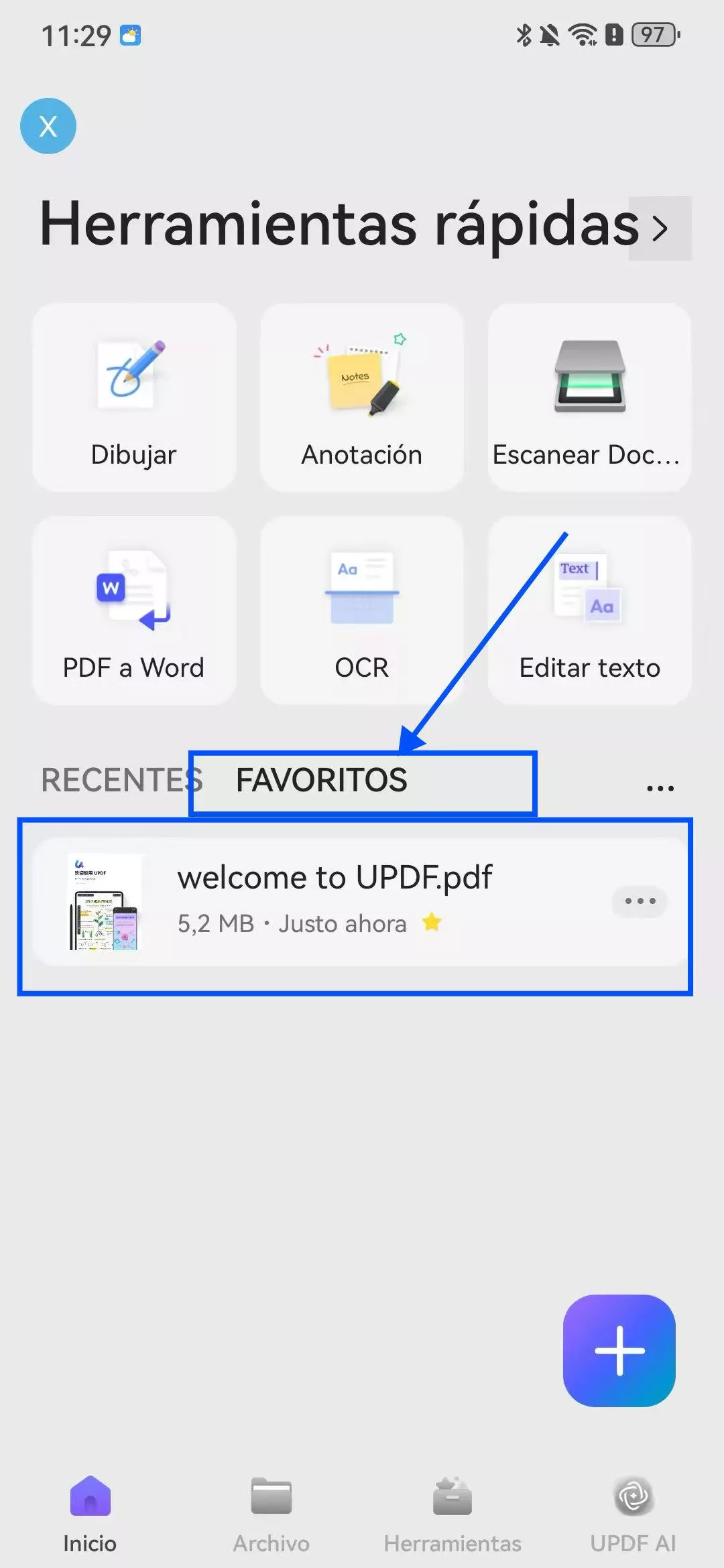 - Luego, podrás acceder a este PDF en cualquier momento cuando estés en la interfaz principal, ya que solo tendrás que tocar en "FAVORITOS".