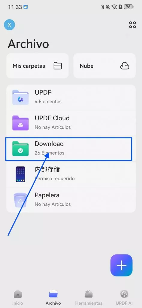 Selecciona una de las carpetas con los archivos PDF que deseas gestionar. Aquí, seleccionaremos la carpeta "UPDF" para mostrar los pasos. Simplemente toca la carpeta y podrás ver todos los archivos PDF que has guardado allí.