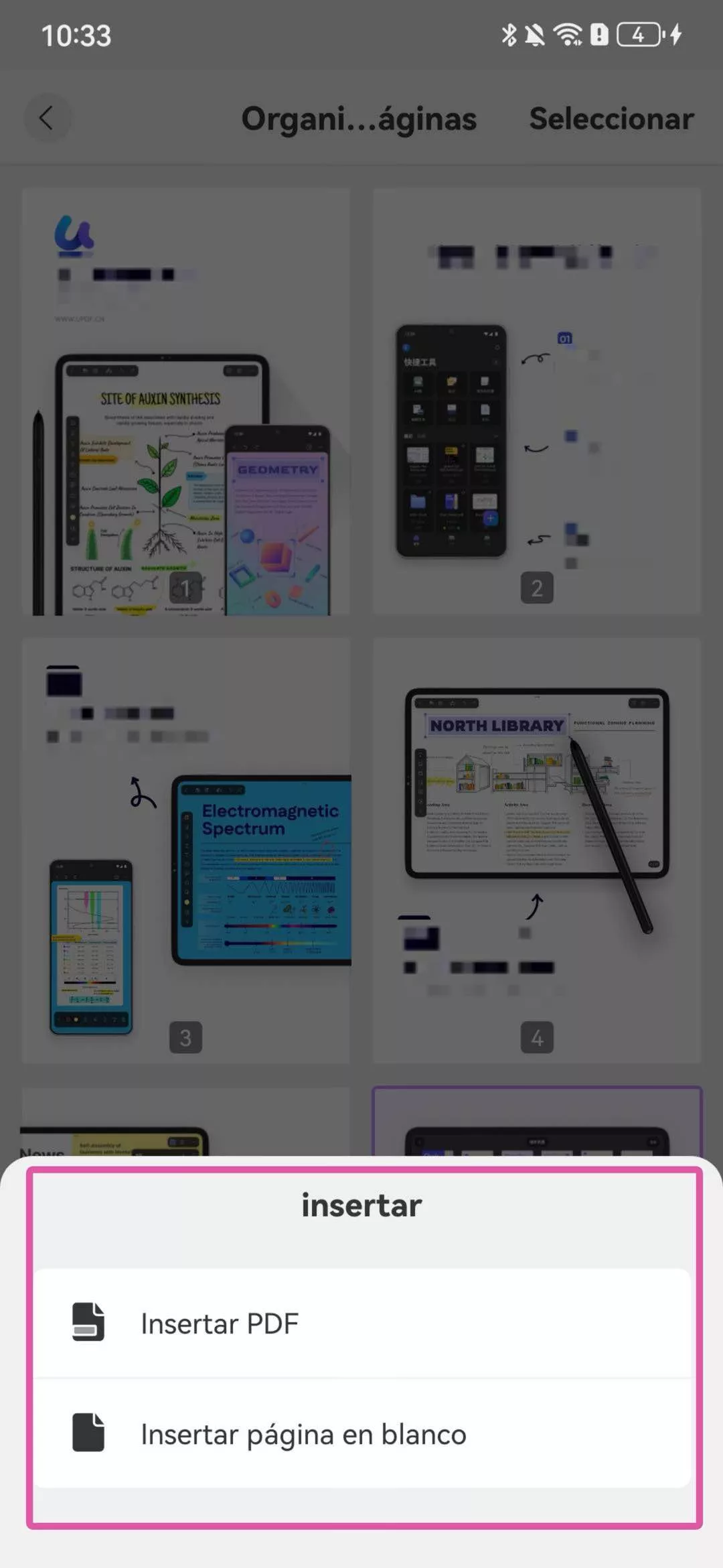 Cuando desees insertar nuevas páginas, pulsa la opción "Insertar" en la barra de herramientas inferior.