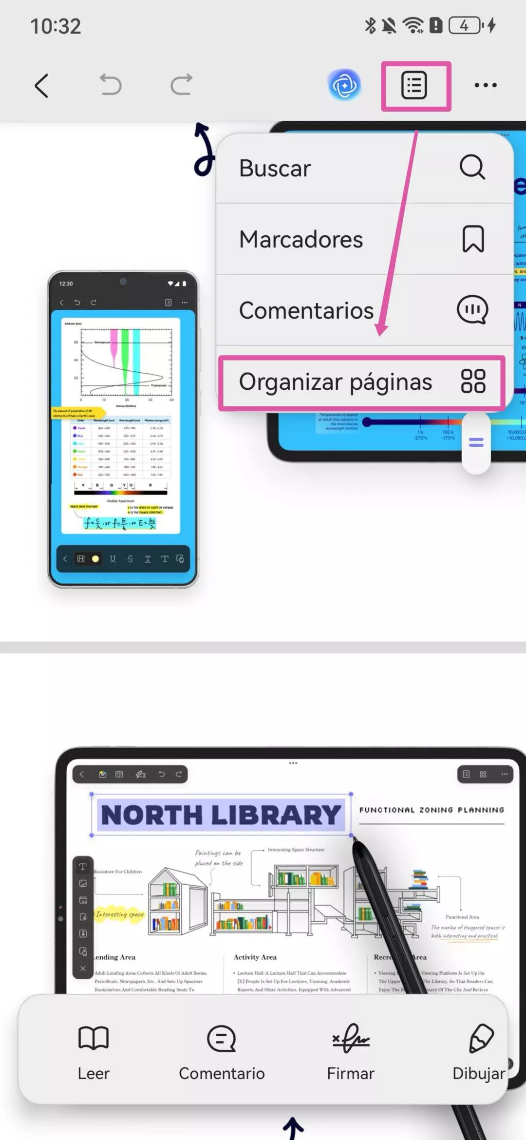 Abre un PDF en tu dispositivo Android. Después de abrir un PDF en tus dispositivos iOS, haz clic en el icono de la Barra de herramientas en la esquina superior derecha de la interfaz y luego selecciona "Organizar páginas". A continuación, sigue los pasos que se indican a continuación: