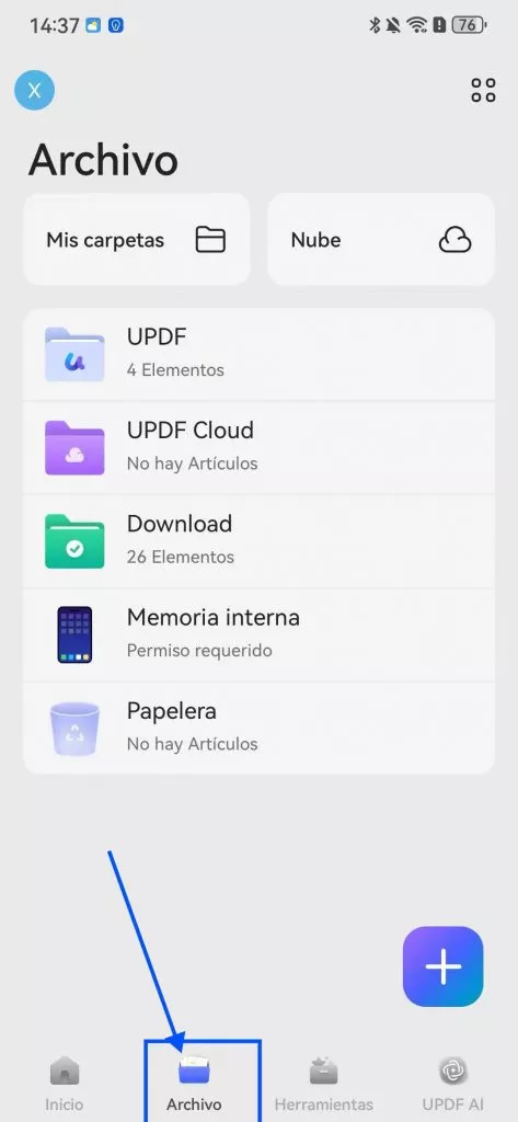Paso 2. Haz clic en el ícono "Archivos" y podrás autorizar el acceso a todos los documentos PDF que acabas de importar desde tu dispositivo Android a UPDF.