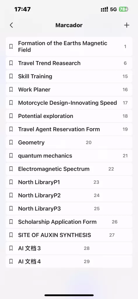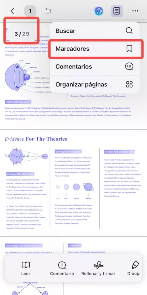 Paso 3: Una vez que hayas importado el documento, ábrelo, desliza hasta la página donde deseas agregar un marcador y toca en la parte superior derecha de la pantalla para añadir el marcador.