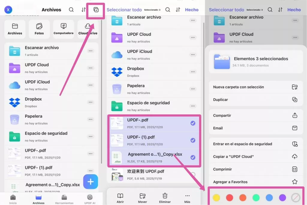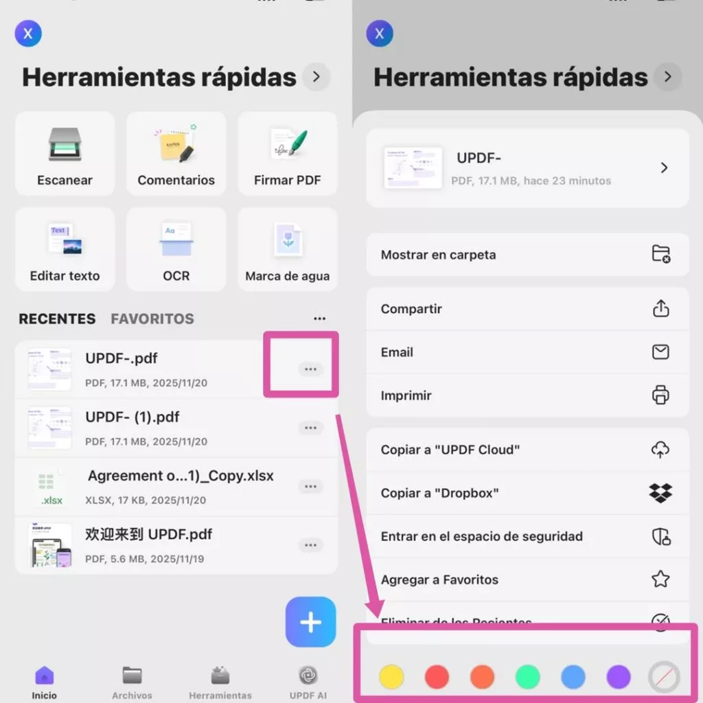 - Toca el color con el que deseas etiquetar el archivo. pasos: