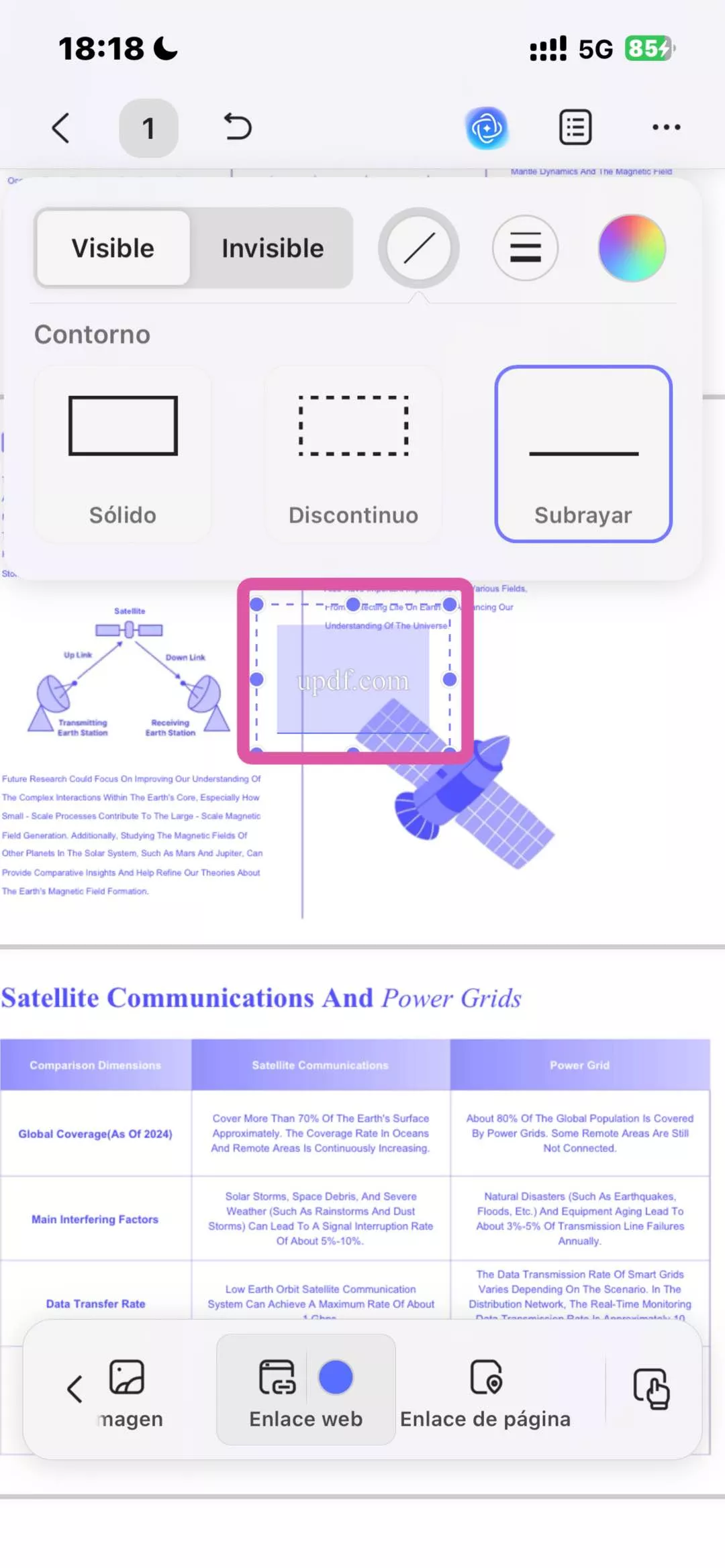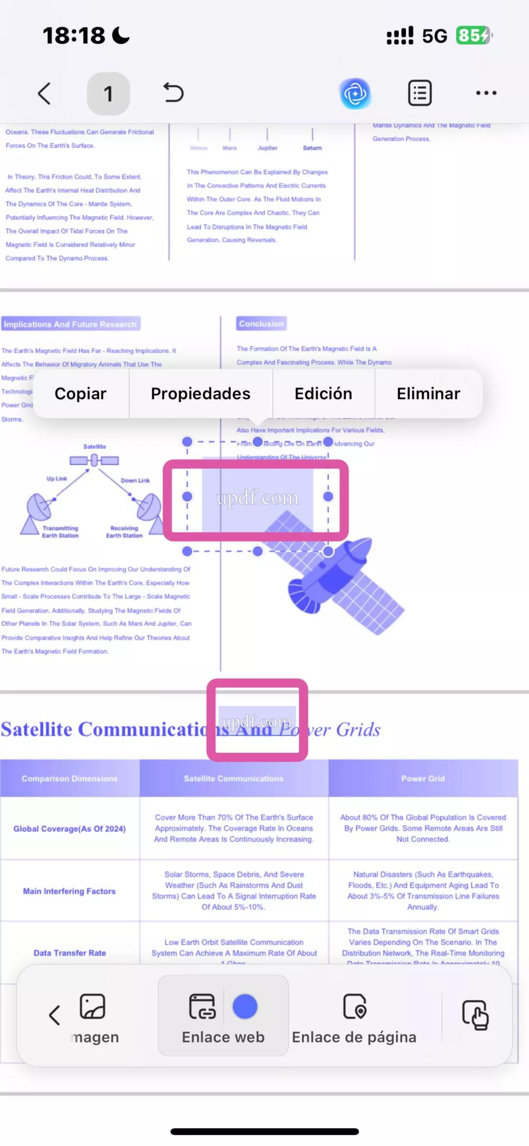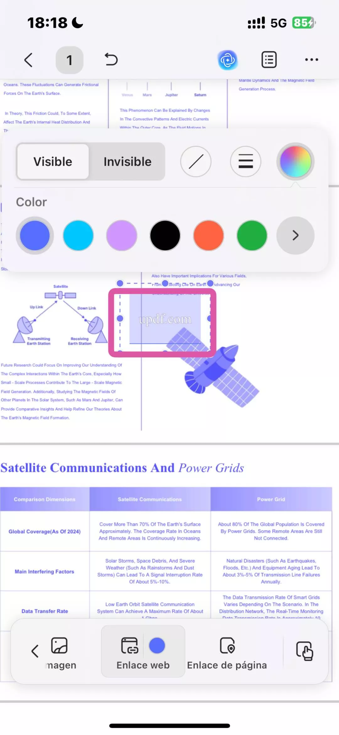 - La opción "Enlace a la Web" te permite ingresar la dirección URL deseada y, al tocar el enlace, navegar a la página especificada después de aplicar el enlace.La opción "Enlace a la Página" requiere que ingreses el número de página deseado.