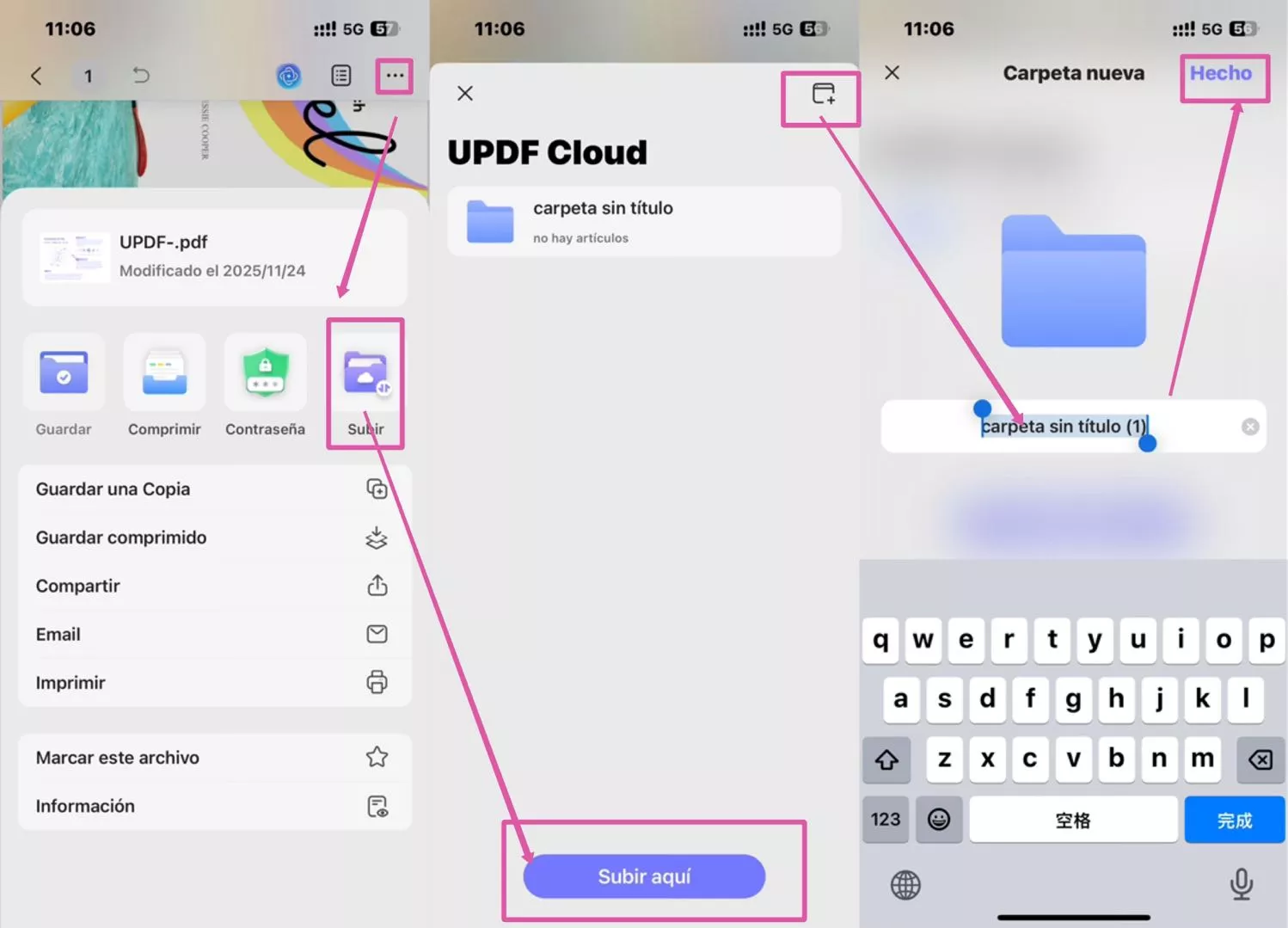 Aquí tiene las tres formas de cargar archivos a UPDF Cloud.