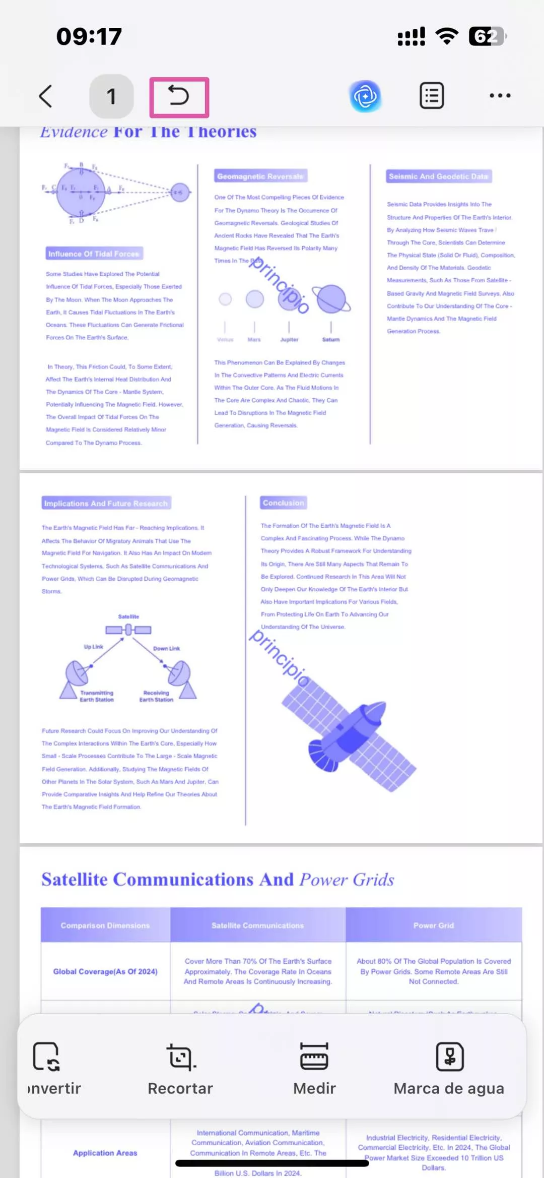 Instrucciones. Para revertir todos los cambios, simplemente toque la opción «Deshacer» en la parte superior y siga tocando hasta llegar a la versión deseada del PDF.