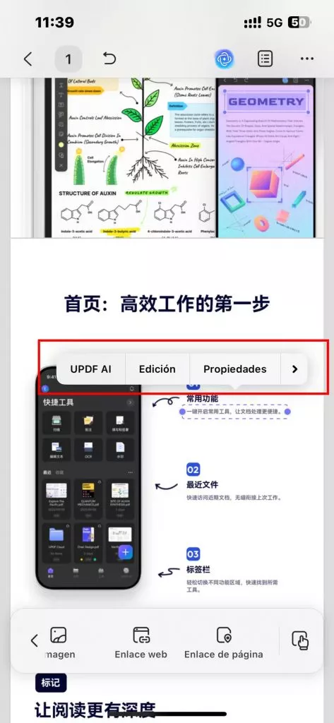 Además, UPDF para iOS ofrece otras formas rápidas de pegar texto en el PDF manteniendo presionado el espacio en blanco dentro del archivo, por lo que también puedes elegir una alternativa de las opciones que se te proporcionan.