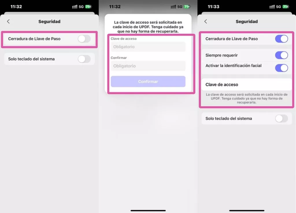 Además de proteger su Espacio de Seguridad, también puede restringir el acceso al propio UPDF añadiendo una clave de acceso para desbloquear la aplicación. De este modo, sólo los usuarios que conozcan la clave podrán abrir UPDF y acceder a su contenido.