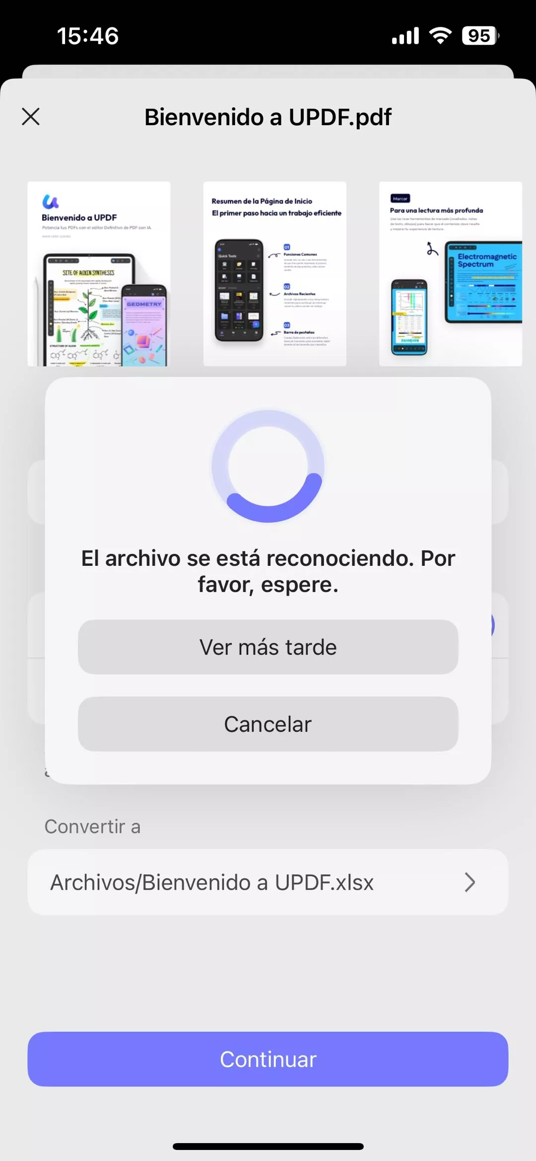 Paso 5. En “Contiuar”, selecciona la ubicación dentro de UPDF donde deseas guardar el archivo Excel convertido.