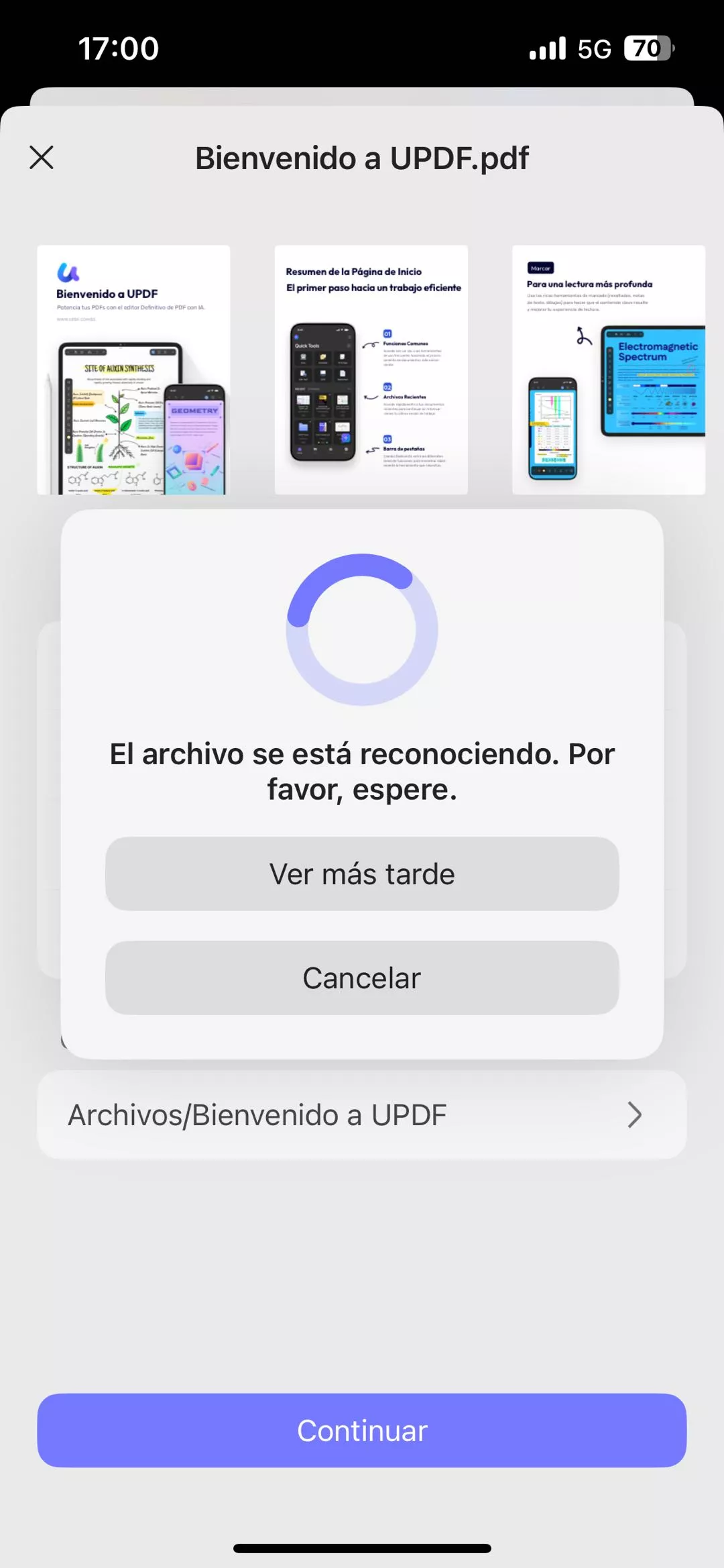 UPDF para iOS te permite colocar todas las páginas de un PDF en una única imagen continua. Sigue estos pasos: